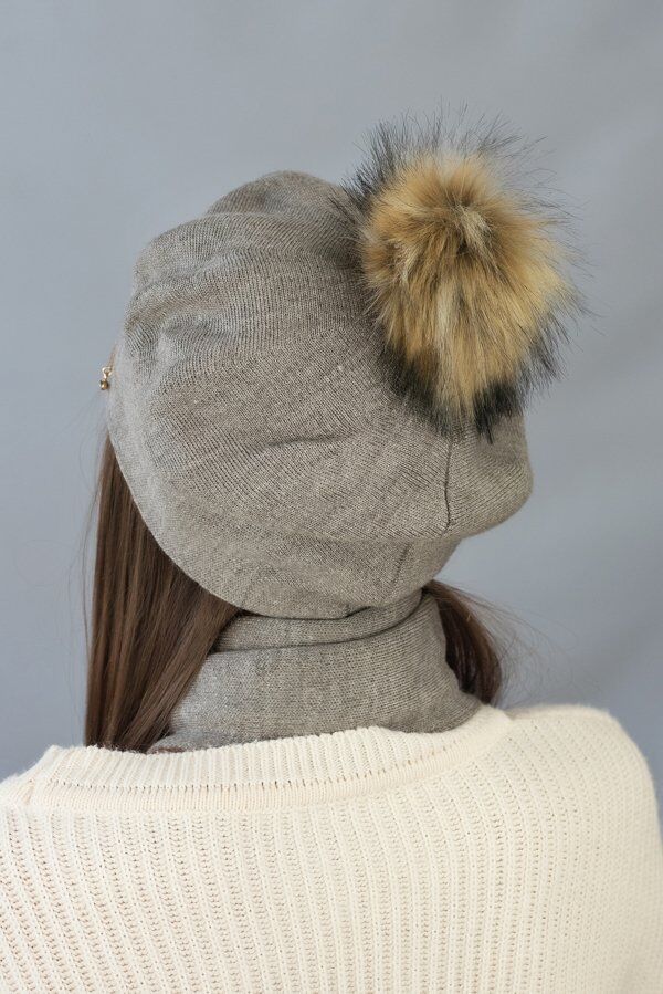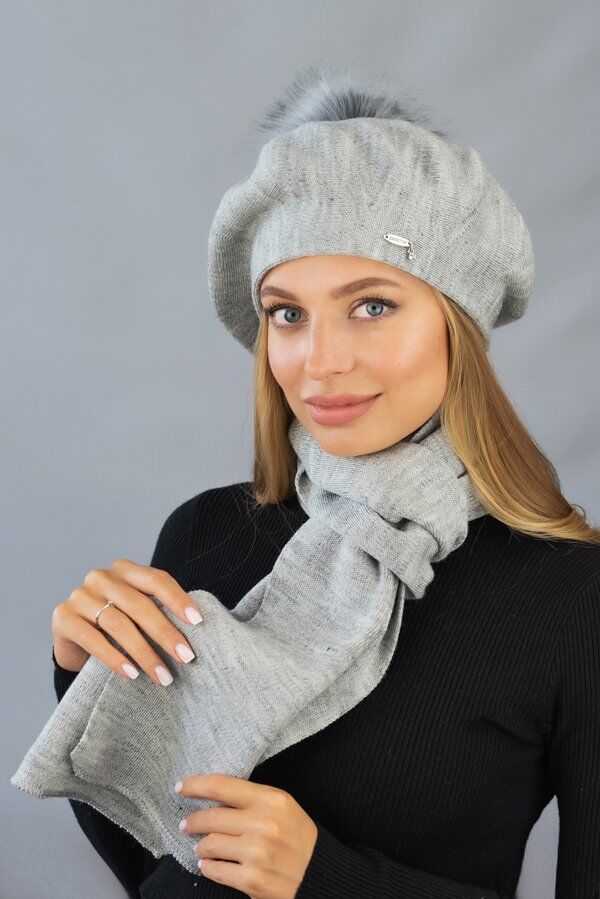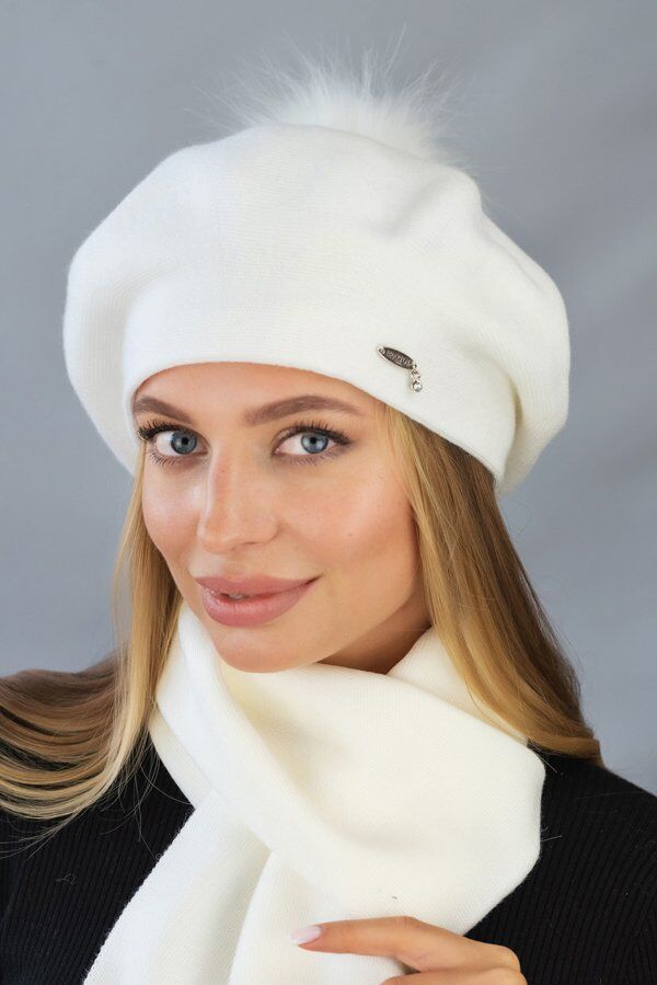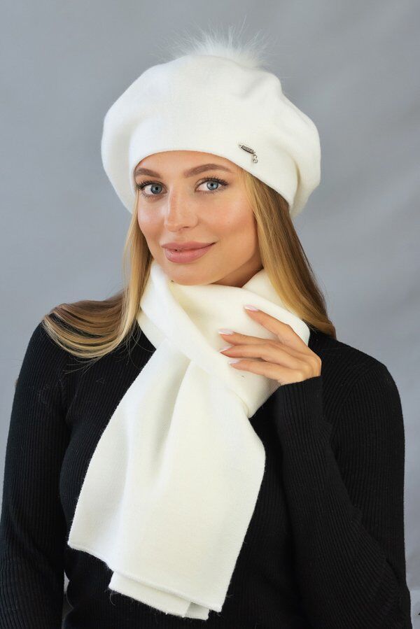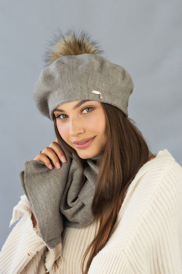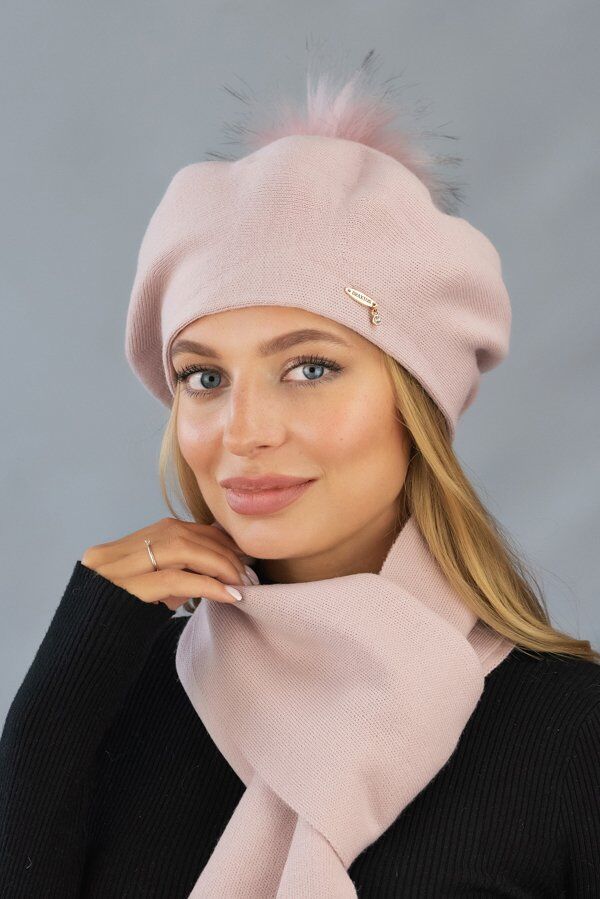Берет «Ляманта» с бубоном (6016) (светлый кофе)