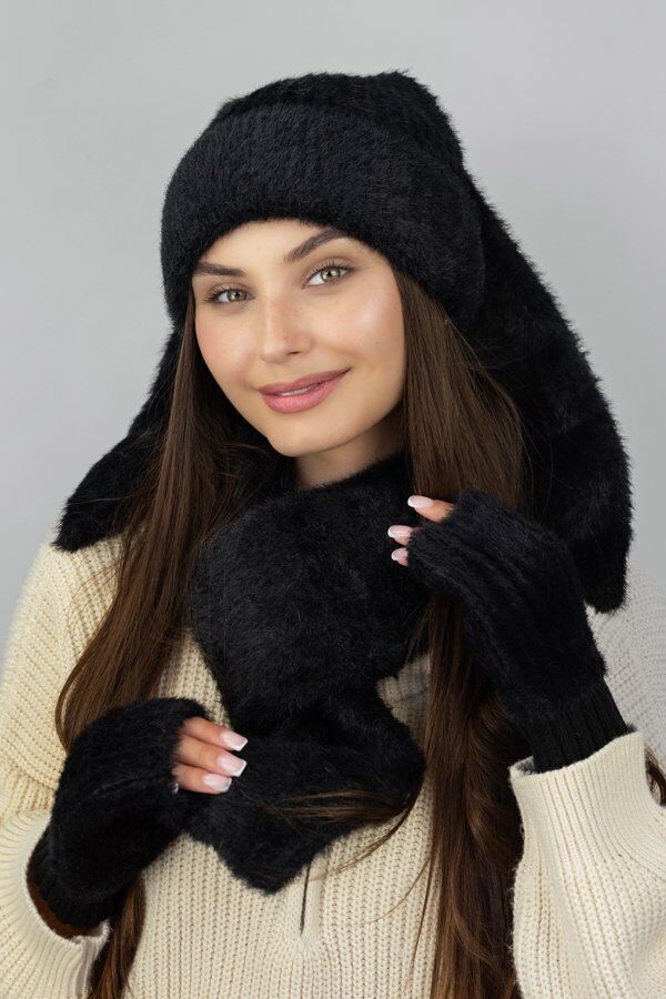 Мягкая пряжа с хлопком, мохером и ангоретом делает шапку уютной и приятной к телу, а плотная вязка надежно защищает от холода. Ушки можно завязать, оставить свободно свисать или обыграть в стиле street-fashion — каждый раз новый mood.