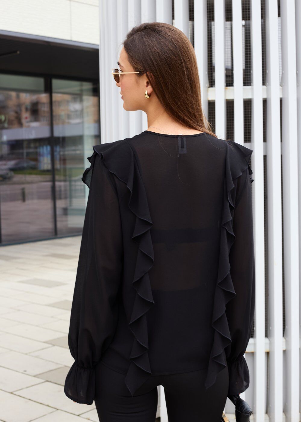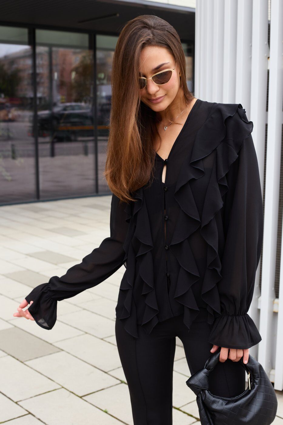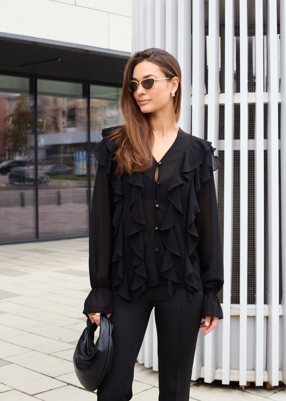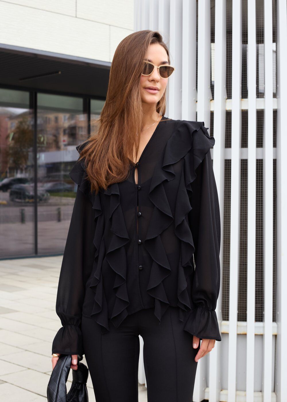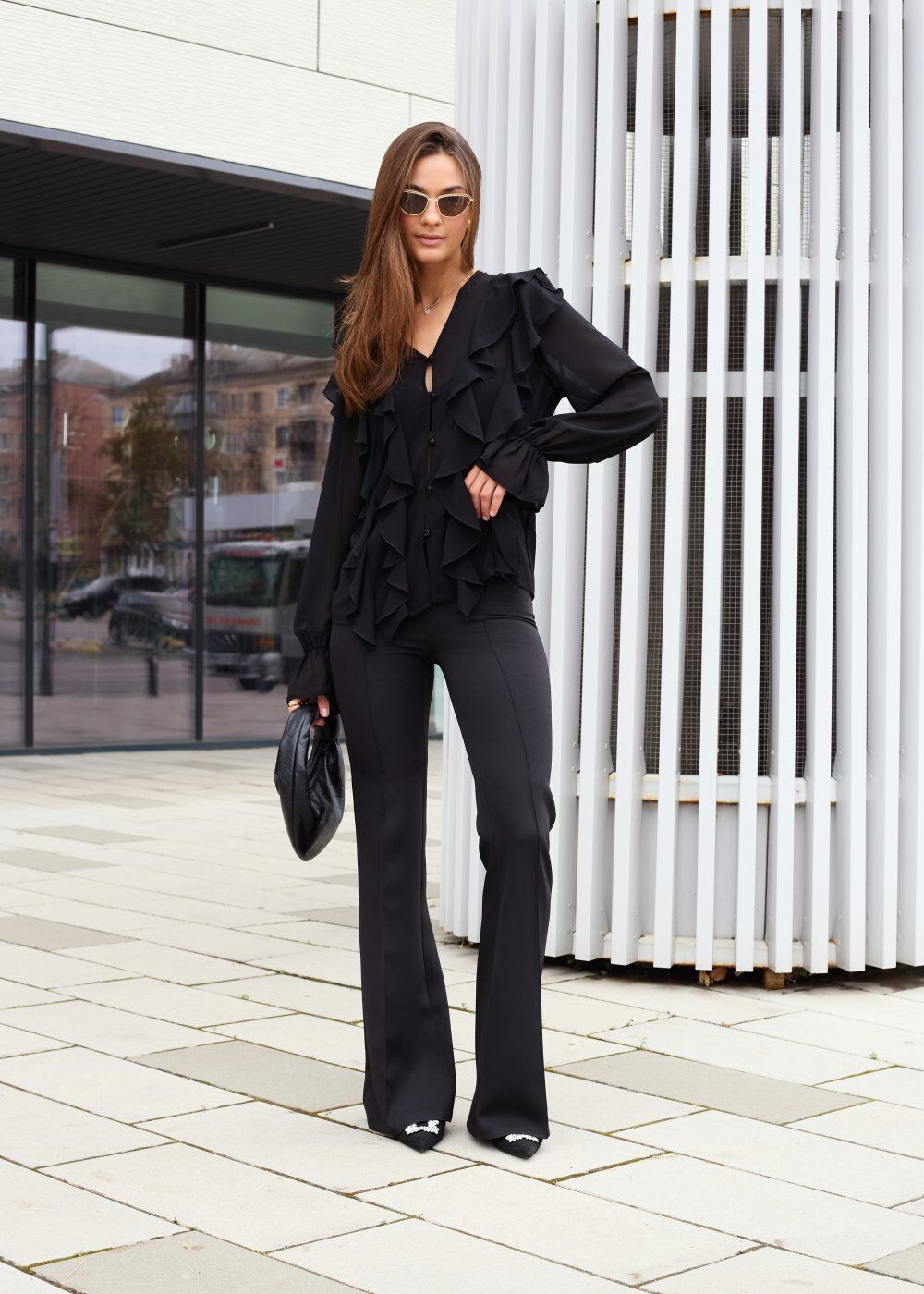 Блуза шифонова з воланами чорна 21322 от Itelle