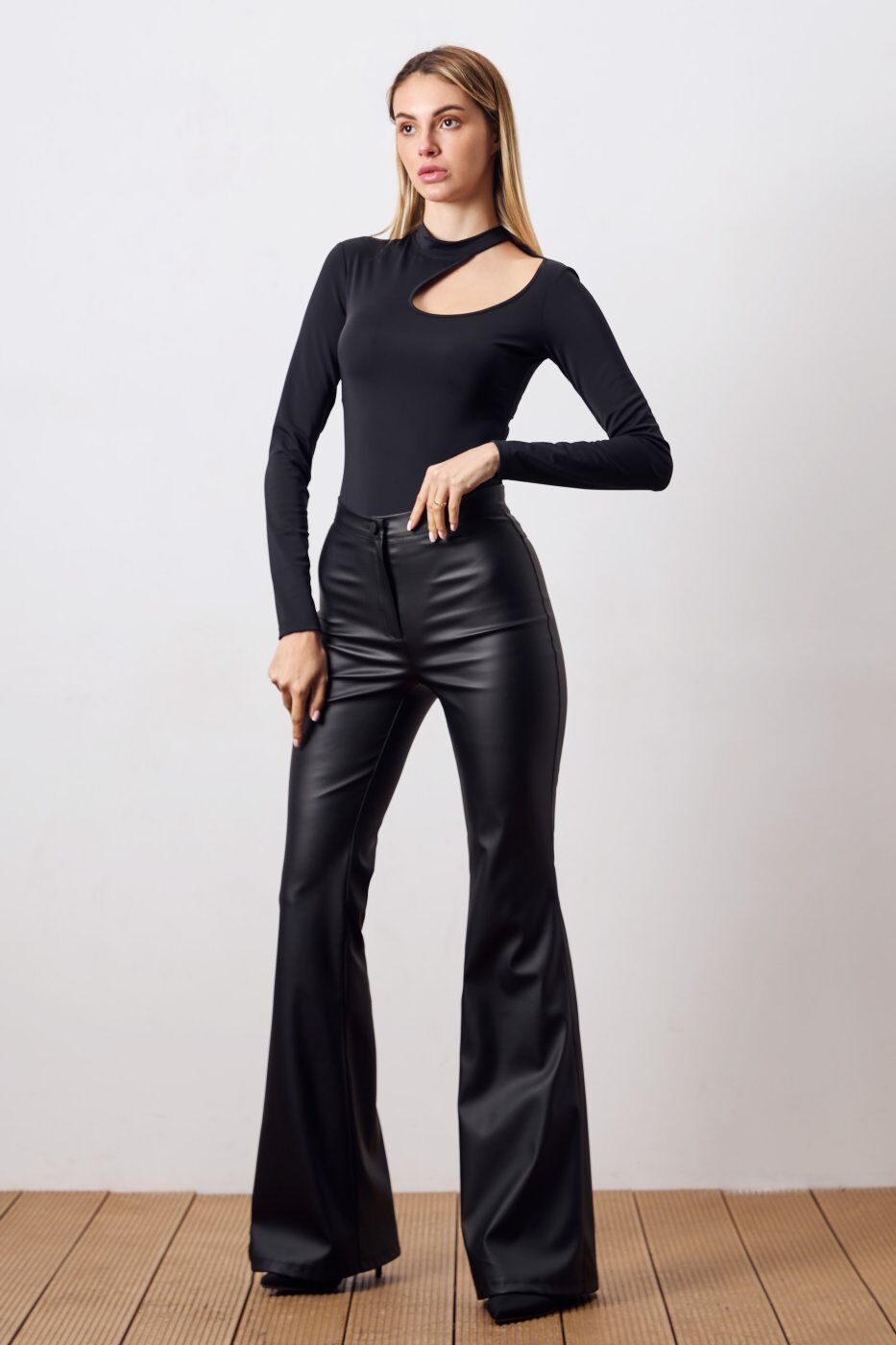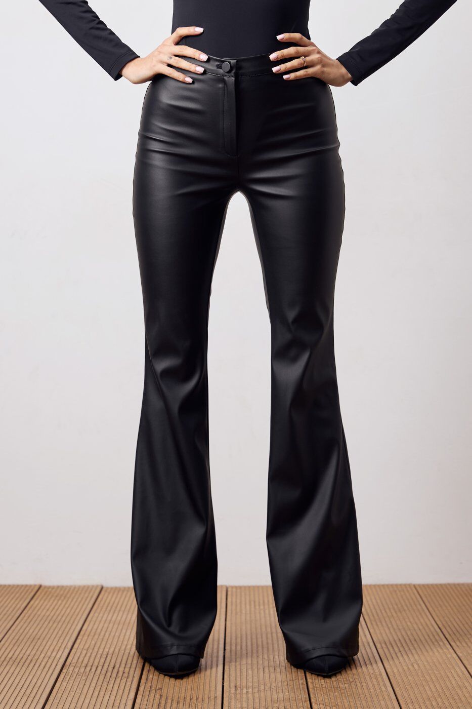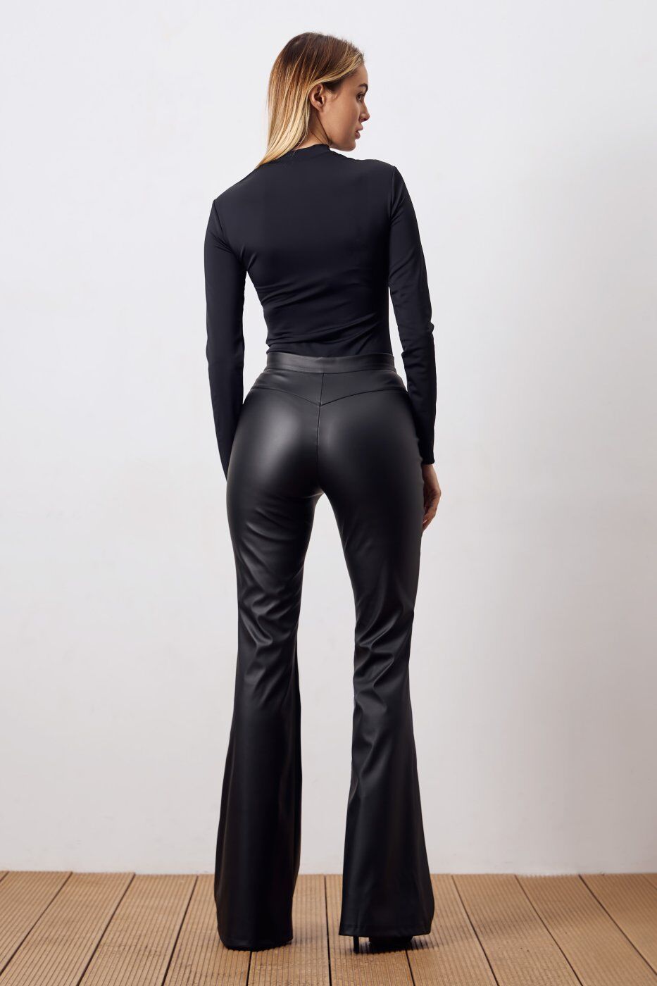 Штани кльош із еко шкіри чорного кольору 4329 от Itelle