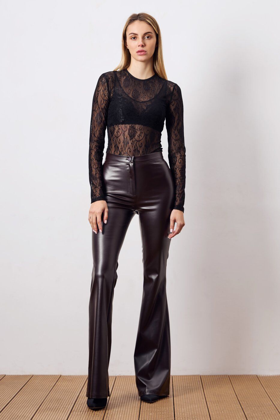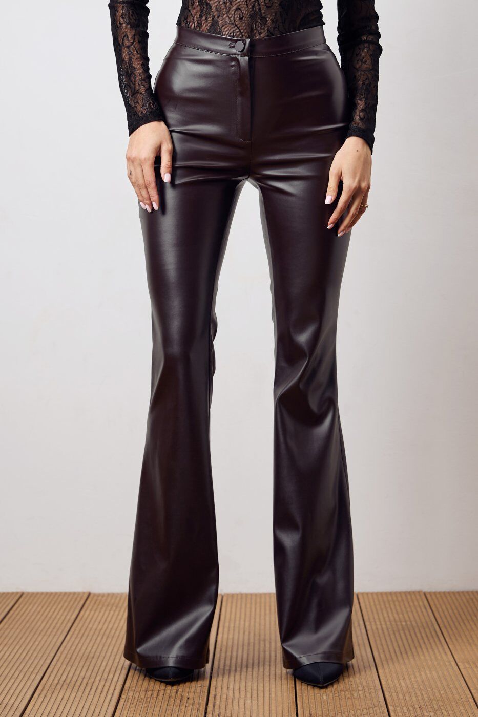 Штани кльош із еко шкіри шоколадного відтінку 4330 от Itelle