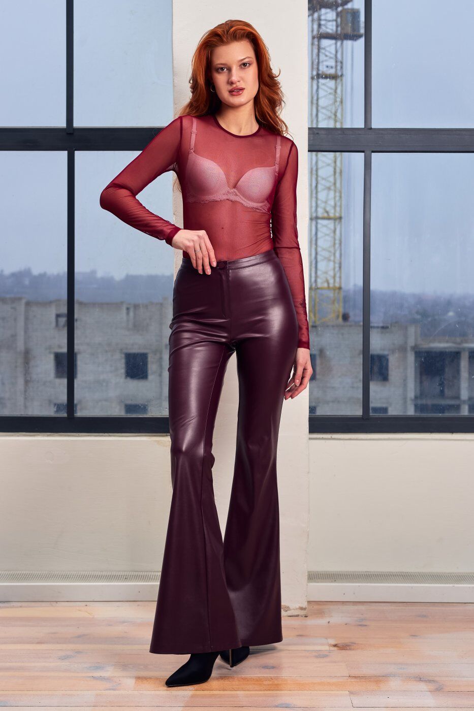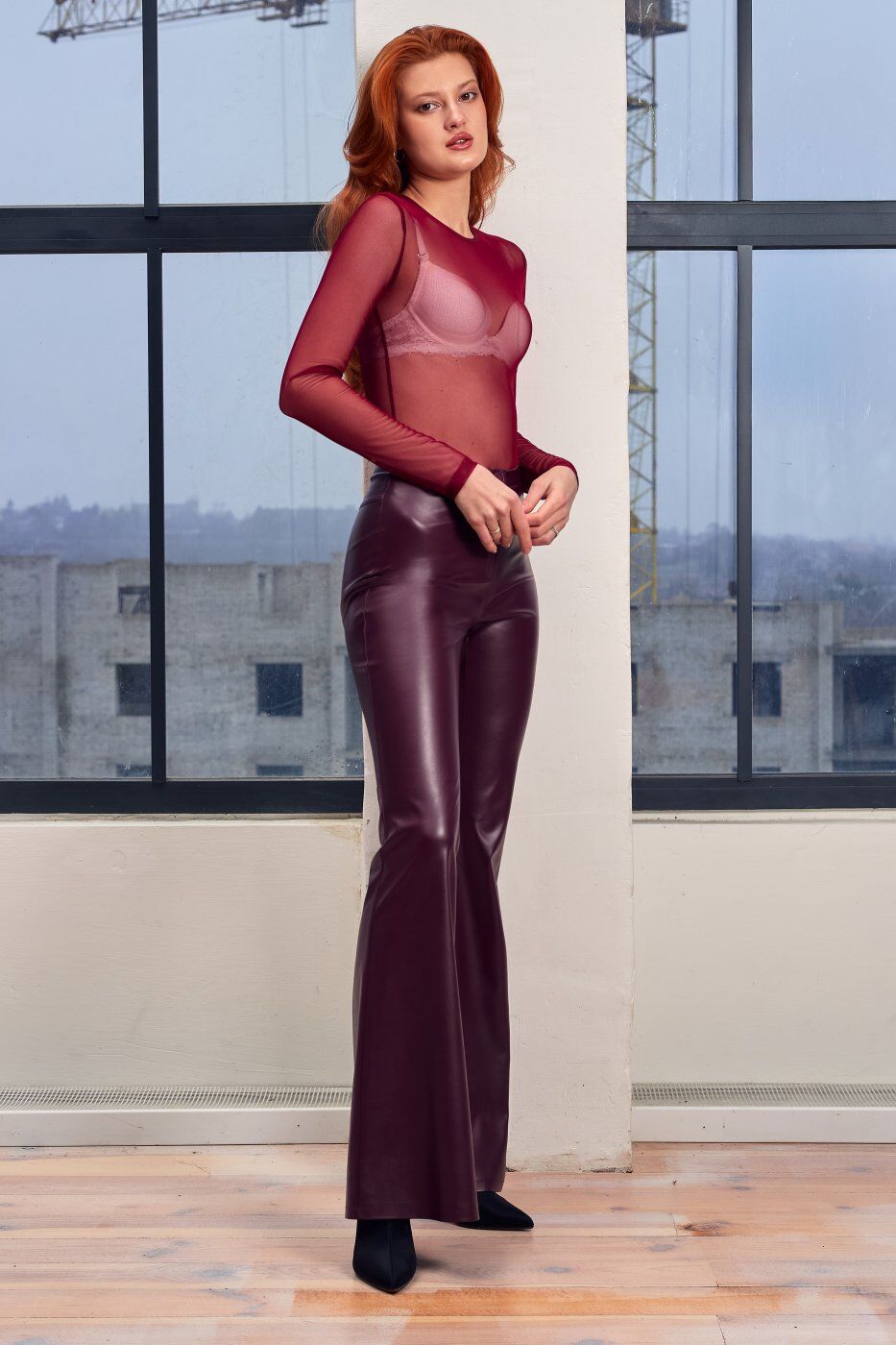 Штани кльош із еко-шкіри бордо 4331 от Itelle