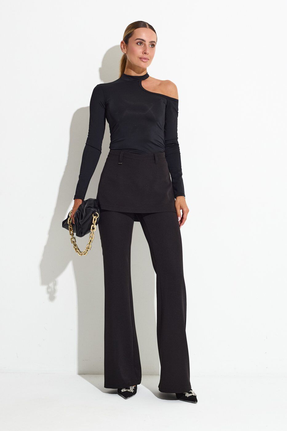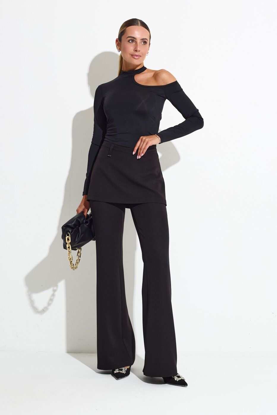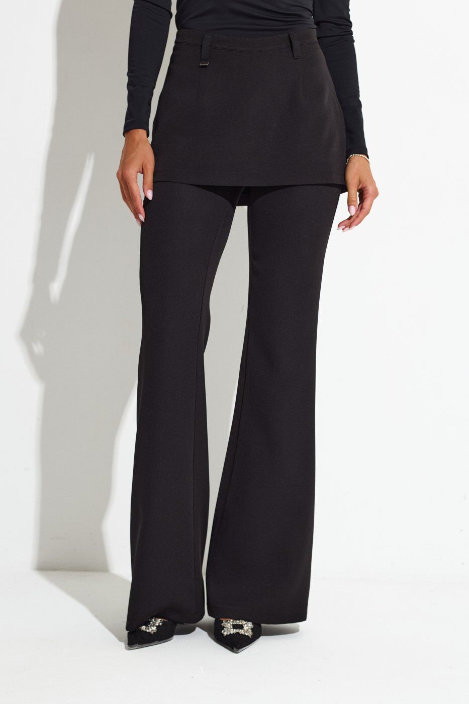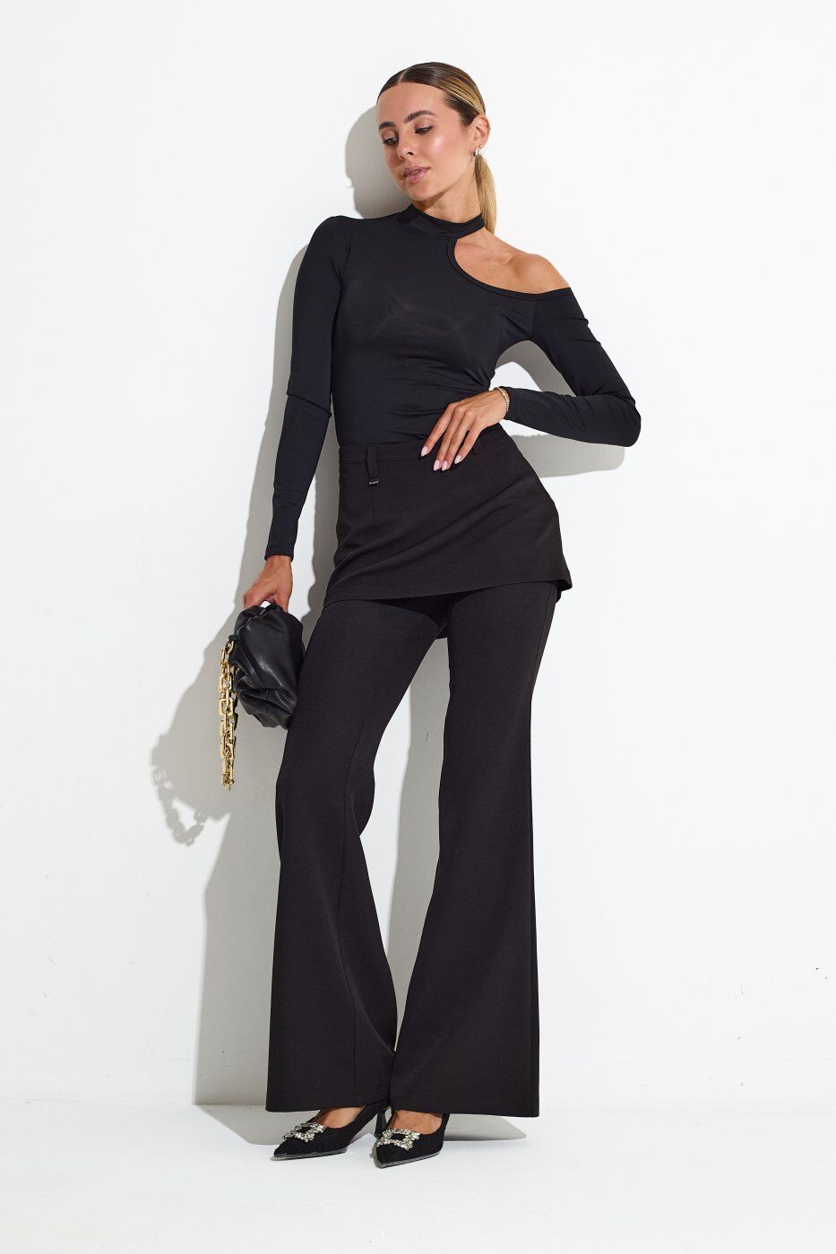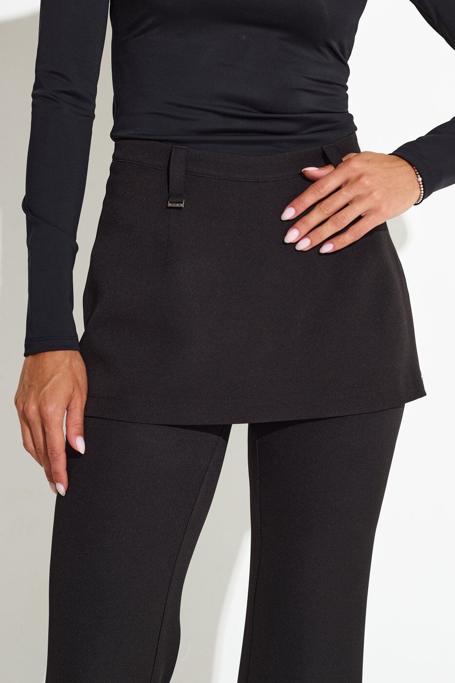 Колір: чорний Розмірний ряд: 42,44,46 Сезон: весна, літо , осінь, зима Склад: 50% віскоза, 25% поліестер, 20% котон, 5% лайкра Стиль: святковий,повсякденний Тип виробу: штани Тип тканини: костюмна тканина Брюки-спідниця виконані у сучасному стилі, що поєднує практичність та ефектний дизайн. Основа моделі — брюки-кльош, поверх яких пришита мініспідниця трапецієподібного крою. Застібка на потаємну блискавку збоку забезпечує акуратний вигляд та комфорт у носінні. Декоративна металева фурнітура на шлевці додає стильного акценту й завершеності образу. Виміри брюк : Об'єм талії: 42р.-67 см, 44р.-71 см, 46р.-75 см. Об'єм стегон: 42р.- 92 см, 44р.- 96 см, 46р.-100 см. Довжина виробу: 42р.-112.5 см, 44р.- 113 см, 46р.-113.5 см.Термін збору замовлення складає від 1 до 7 робочих днів. Докладніше