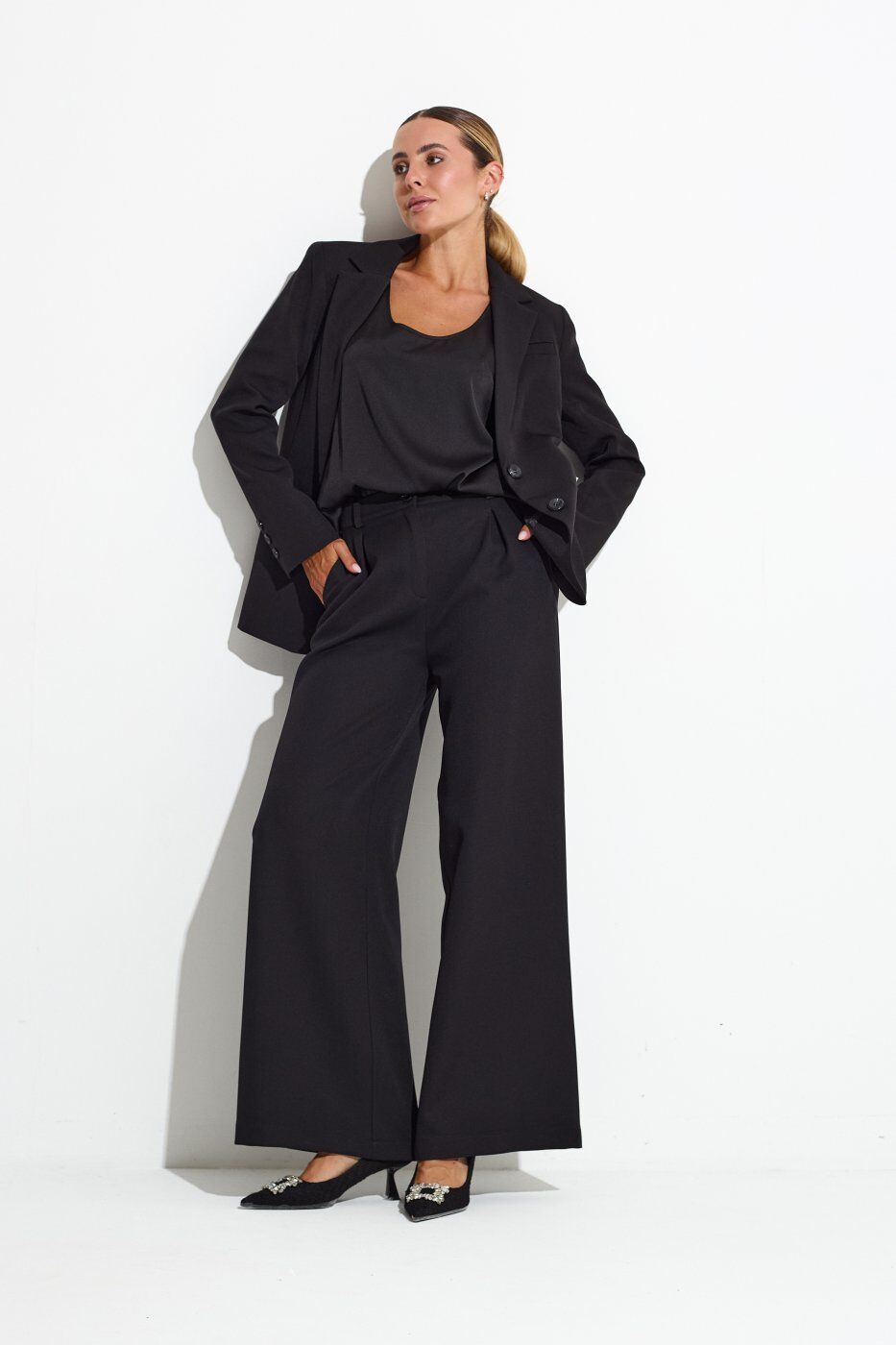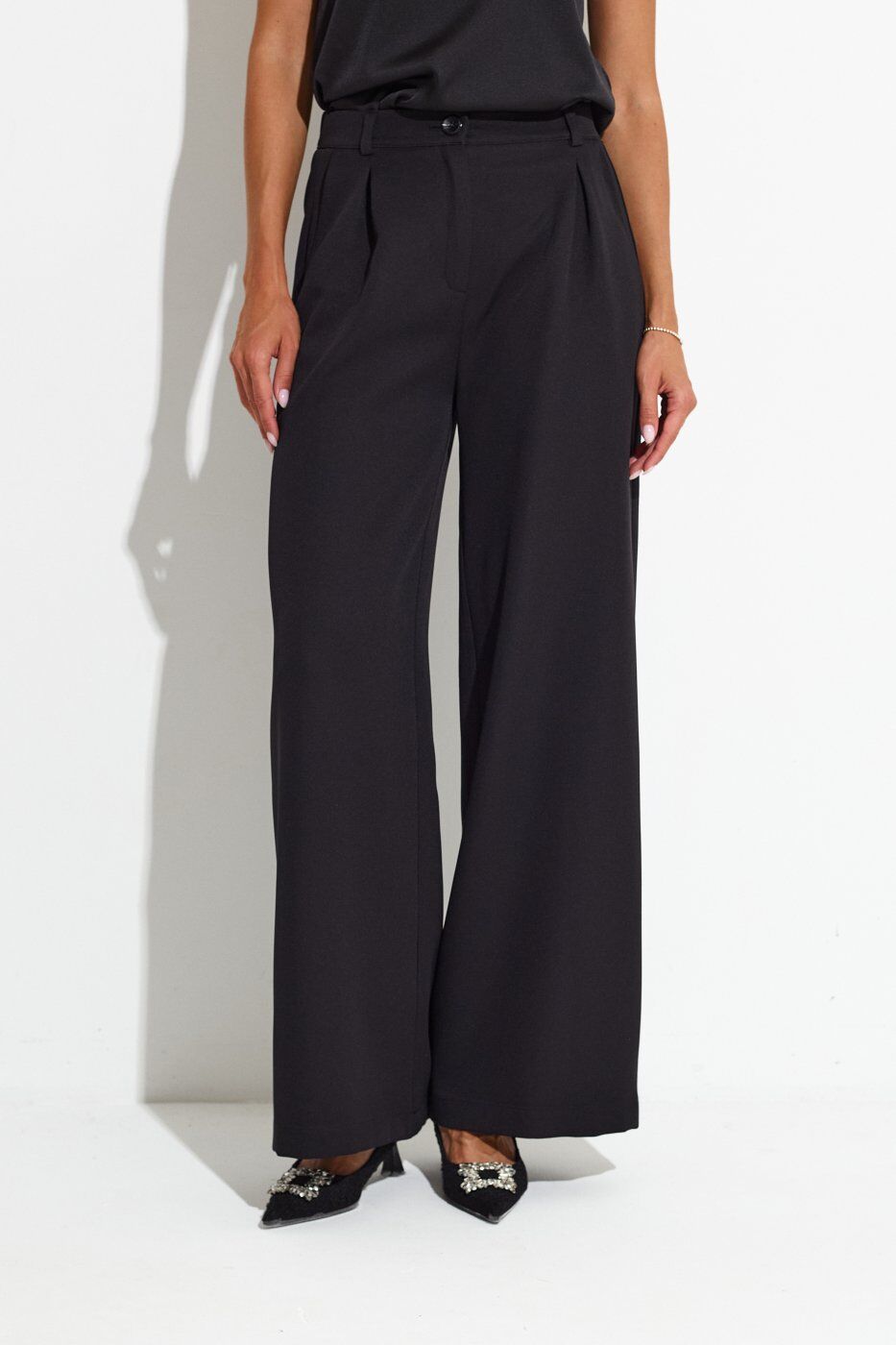 Колір: чорний Розмірний ряд: 42,44,46 Сезон: весна, літо , осінь, зима Склад: 50% віскоза, 25% поліестер, 20% котон, 5% лайкра Стиль: святковий,повсякденний Тип виробу: штани Тип тканини: костюмна тканина Ці брюки палаццо із защіпами та поясом на резинці по спинці нададуть вам універсальність та комфорт. Ця модель ідеально підійде як для офісного образу, так і для повсякденного стилю. Зручність у носінні гарантована завдяки еластичному поясу. Оберіть якість та стиль з цими брюками! Виміри брюк : Об'єм талії: 42р.-71 см, 44р.-75 см, 46р.-79 см. Об'єм стегон: 42р.- 104 см, 44р.- 108 см, 46р.-112 см. Довжина виробу: 42р.-107 см, 44р.- 107.5 см, 46р.-108 см.Термін збору замовлення складає від 1 до 7 робочих днів. Докладніше