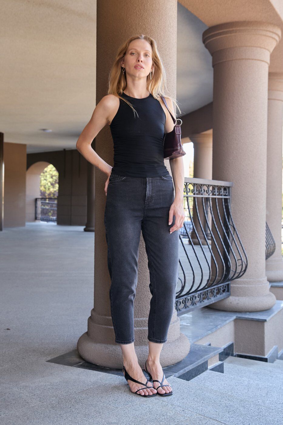 Джинси мом Колір графіт Розміри 34,38,40 Сезон: літо, весна , осінь Склад: 100% котон Стиль: повсякденний, святковий Тип виробу: джинси Тип тканини: джинсова тканина Виміри брюк : Об'єм талії: 34р. -66 см, 38р.-74см. 40р.-78 см Об'єм стегон: 34р. - 86 см, 38р.-94 см. 40р.- 98 см Довжина виробу: 34р. -90,5 см, 38р.-91,5 см. 40р.-92 смТермін збору замовлення складає від 1 до 7 робочих днів. Докладніше