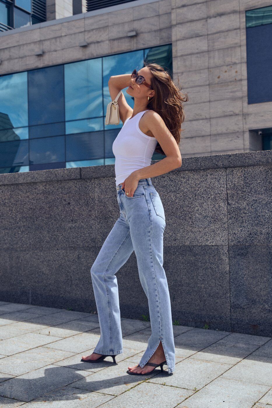 Джинси кльош з розрізами по нозі голубі 4345 от Itelle