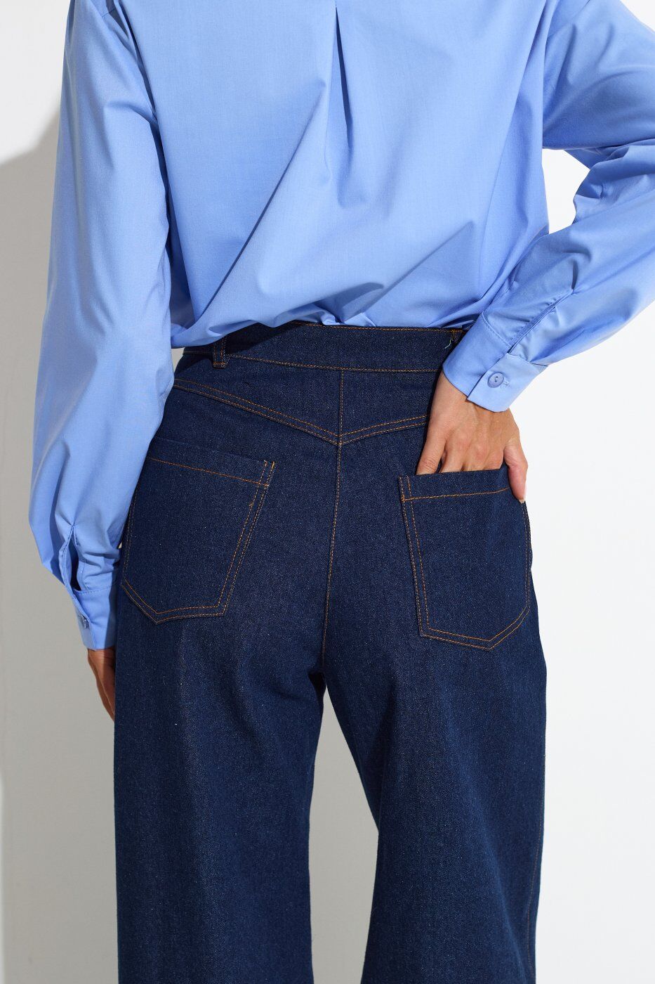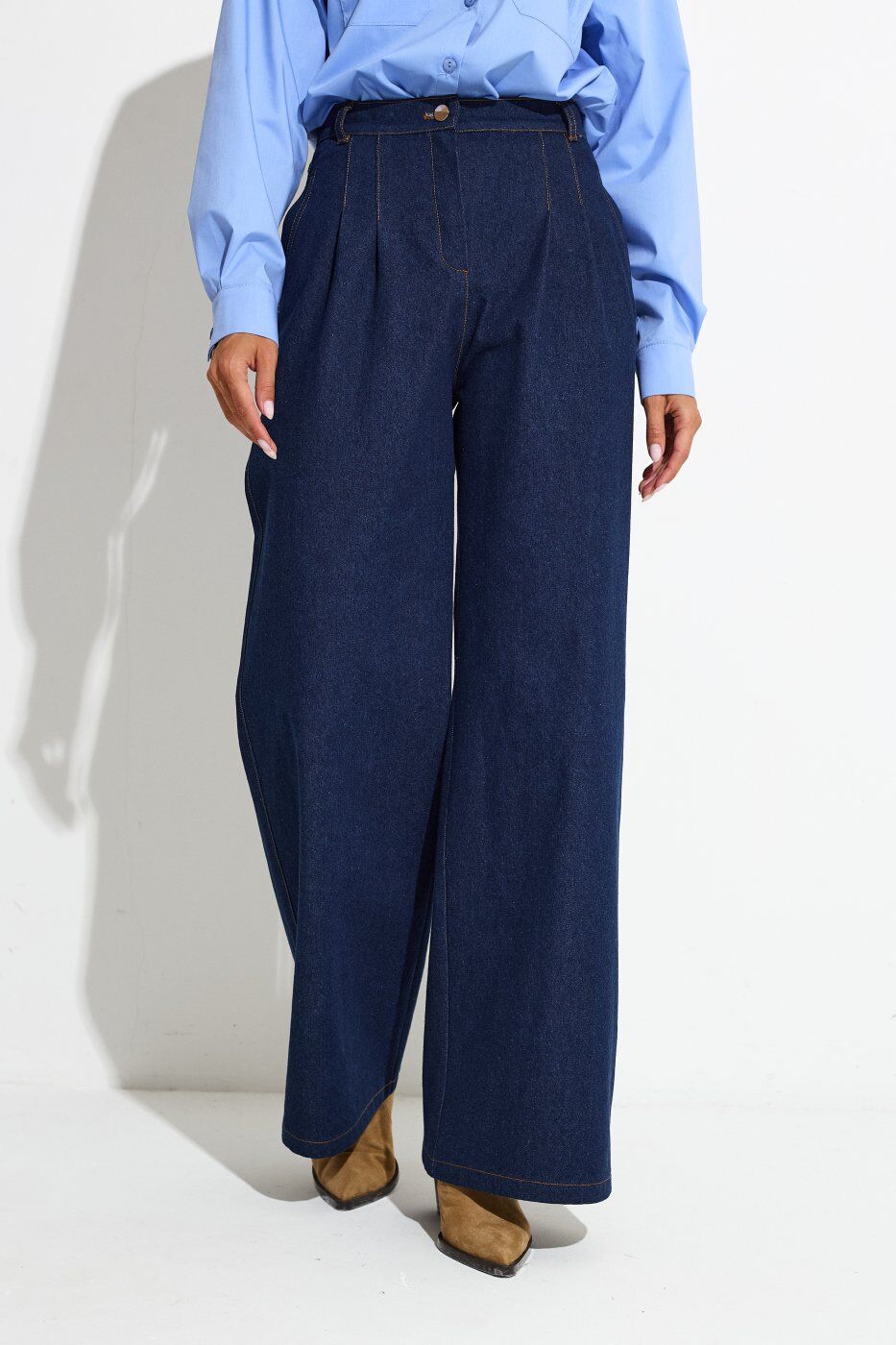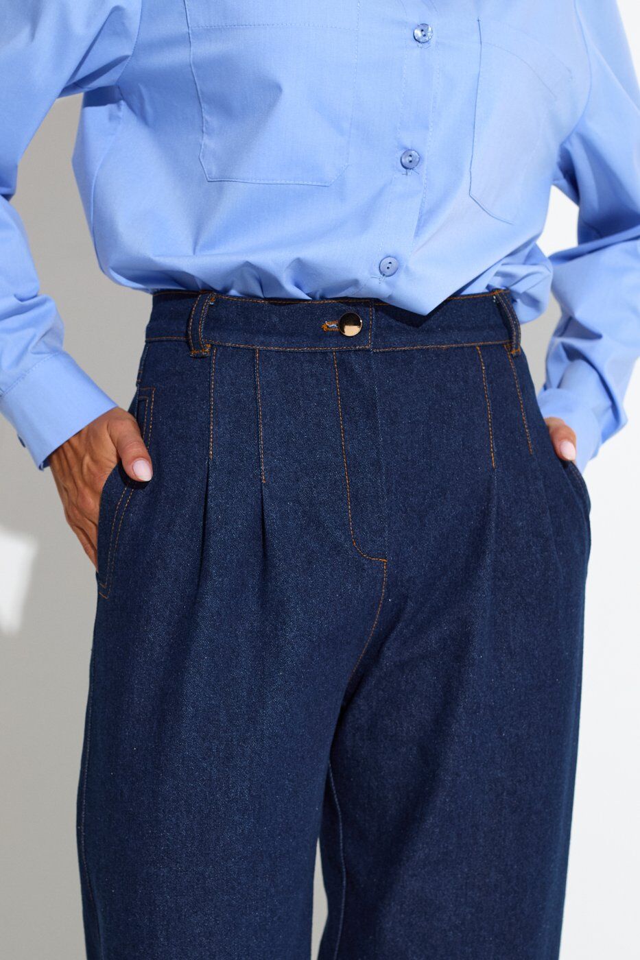 Колір: синій Розмірний ряд: 42,44,46 Сезон: весна, літо , осінь, зима Склад: 50% віскоза, 25% поліестер, 20% котон, 5% лайкра Стиль: святковий,повсякденний Тип виробу: штани Тип тканини:джинсова тканина Джинси палаццо темно-синього кольору відзначаються вільним кроєм, що додає силуету легкості та витонченості. Контрастна відстрочка рудими нитками підкреслює лінії моделі та створює стильний акцент. Завдяки глибокому кольору та елегантному фасону, ці джинси легко поєднувати з різними образами. Виміри джинсів : Об'єм талії: 42р.-69 см, 44р.-73 см, 46р.-77 см. Об'єм стегон: 42р.- 97 см, 44р.- 101 см, 46р.-105 см. Довжина виробу: 42р.-111.5 см, 44р.- 112 см, 46р.-112.5 см.Термін збору замовлення складає від 1 до 7 робочих днів. Докладніше