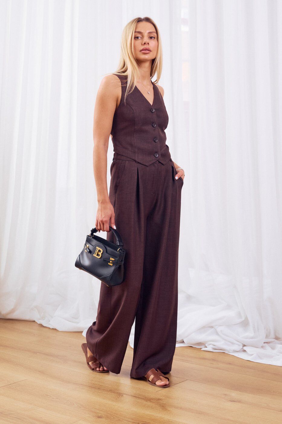 Костюм, що складається із штанів палаццо та жилету з відкритою спиною шоколад 3230 от Itelle