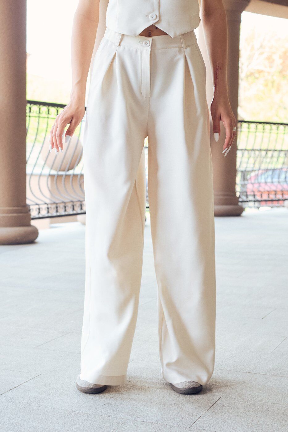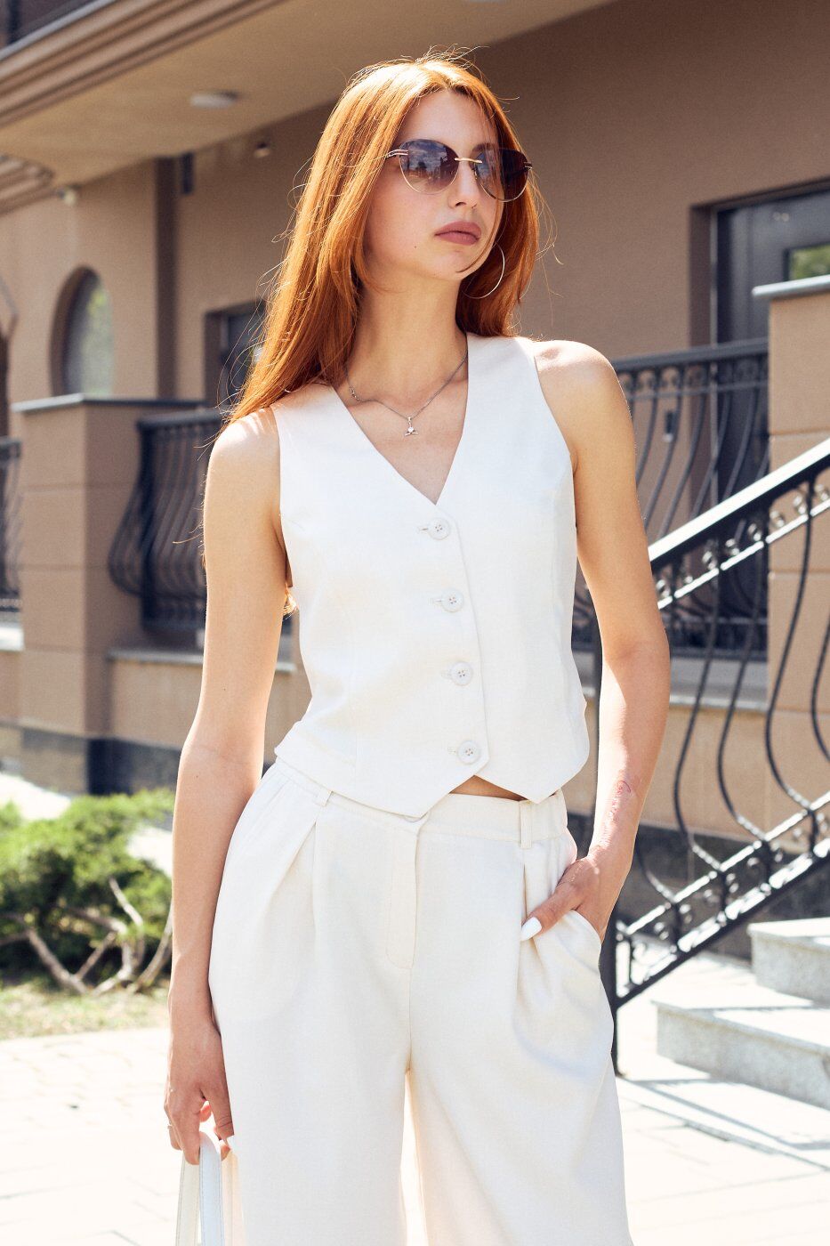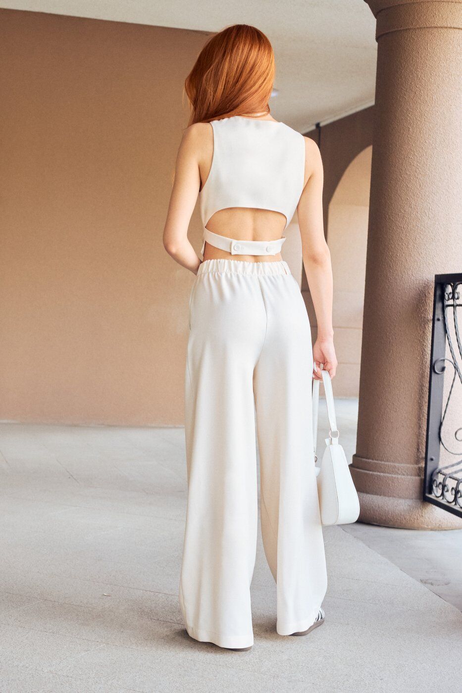 Костюм, що складається із штанів палаццо та жилету з відкритою спиною айворі 3231 от Itelle