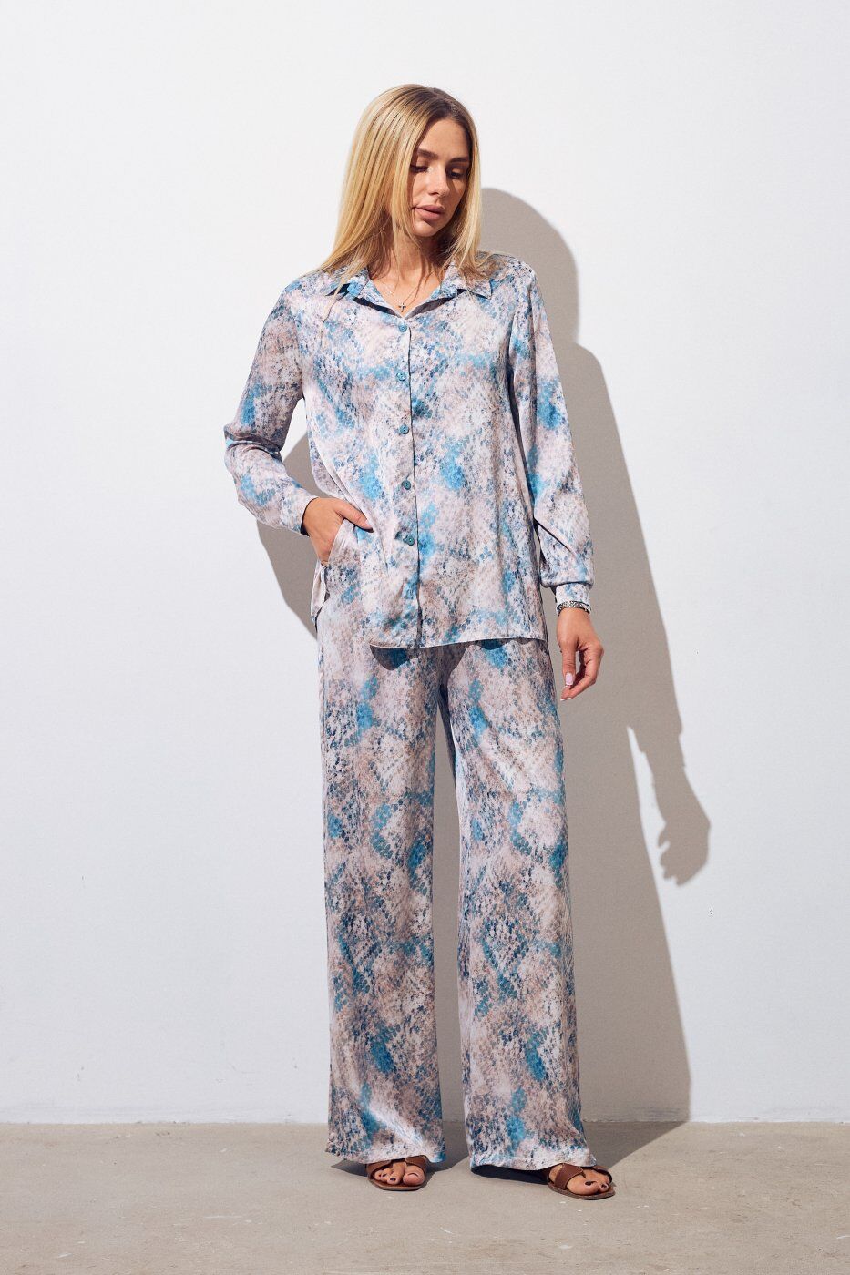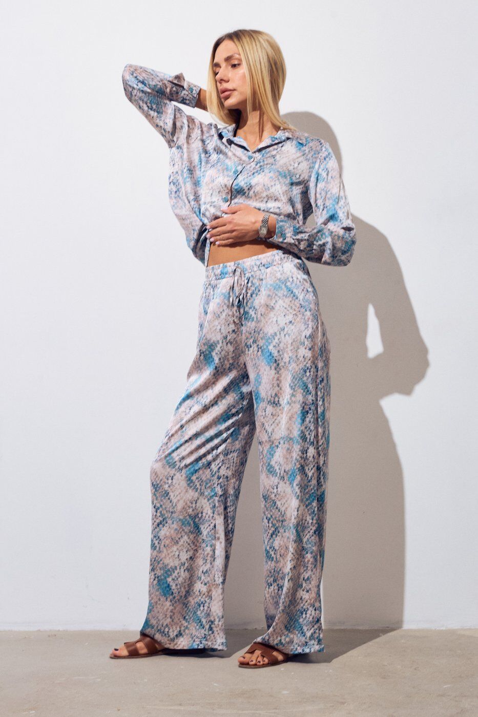 Костюм в пижамному стилі із шовку Баварія бірюзова 3232 от Itelle