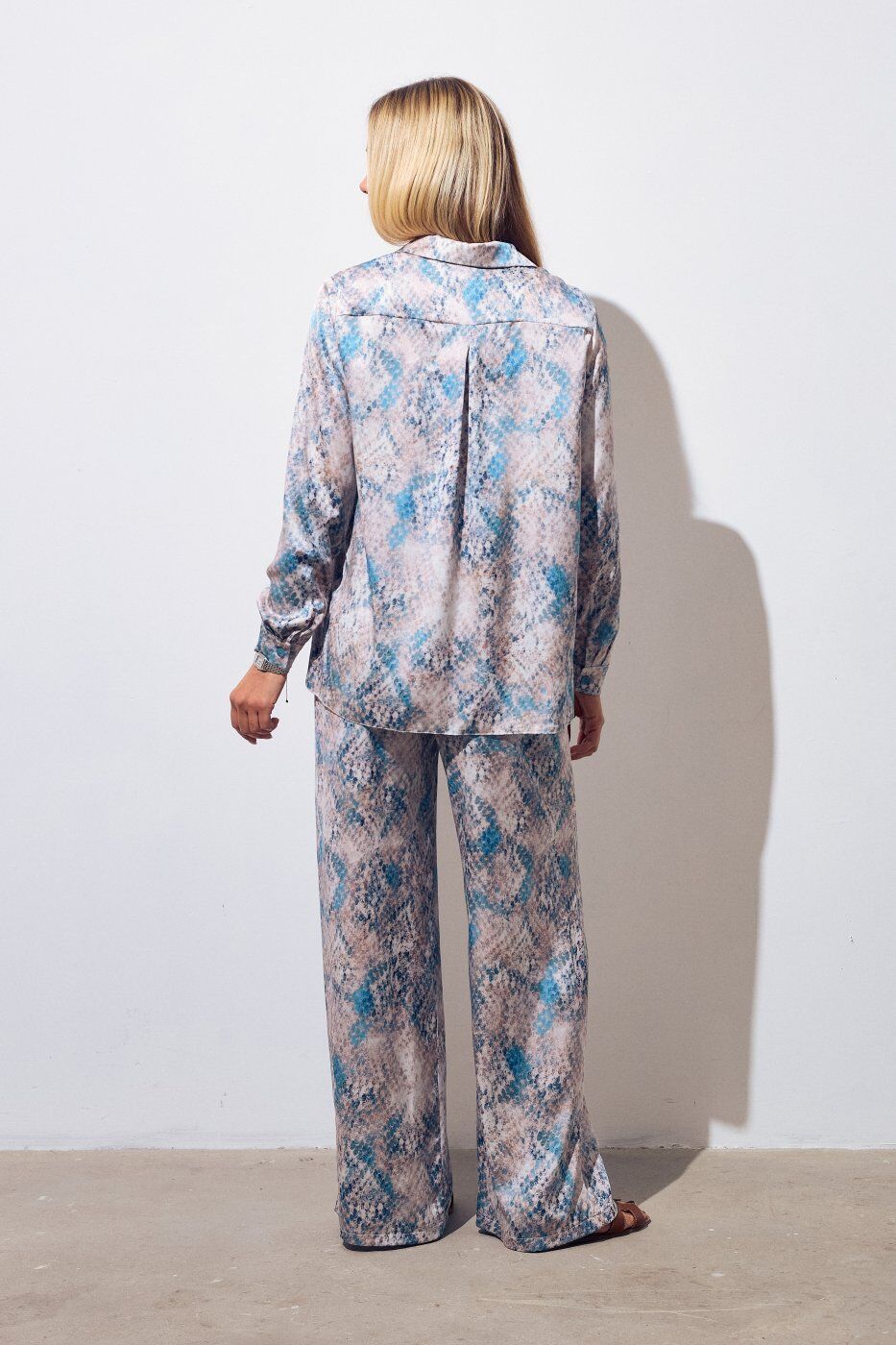 Колір: Принт бірюзовий Розмірний ряд: 42,44,46 Сезон: весна, літо Склад: 50% віскоза, 25% поліестер, 20% котон, 5% лайкра Стиль: святковий, повсякденний Тип виробу: костюм Тип тканини: штучний шовк Костюм у піжамному стилі з шовку. Рубашка вільного крою з асиметричними боками, створює елегантний силует. Брюки прямі, з комфортною резинкою на поясі та боковими кишенями. Тканина м’яка, приємна до тіла, має легкий блиск. Виміри сорочки : Об'єм грудей: 42р.-98 см, 44р.-102 см, 46р.-106 см. Об'єм талії: 42р. 104 см, 44р.-108 см, 46р.-112 см. Об'єм стегон : 42р. 110 см, 44р.-114 см, 46р.-118 см. Довжина рукава: 42р.-60 см, 44р.-60.3 см, 46р.-60.6 см. Довжина спинки: 42р.-70 см, 44р .-70.3 см, 46р.- 70.6 см. Довжина полички: 42р.-68 см, 44р.- 68.5 см, 46р.- 69 см Виміри брюк : Об'єм талії: 42р.-66 см, 44р.-70 см, 46р.-74 см. Об'єм стегон: 42р.- 98 см, 44р.- 102 см, 46р.-106 см. Довжина виробу: 42р.-107 см, 44р.- 107.5 см, 46р.-108 см.Термін збору замовлення складає від 1 до 7 робочих днів. Докладніше