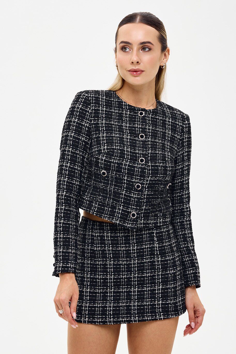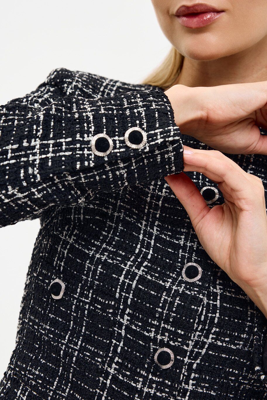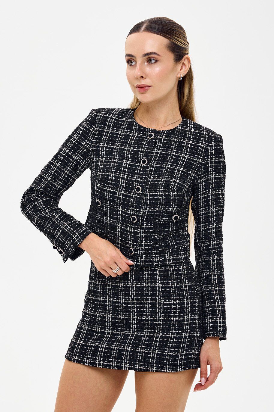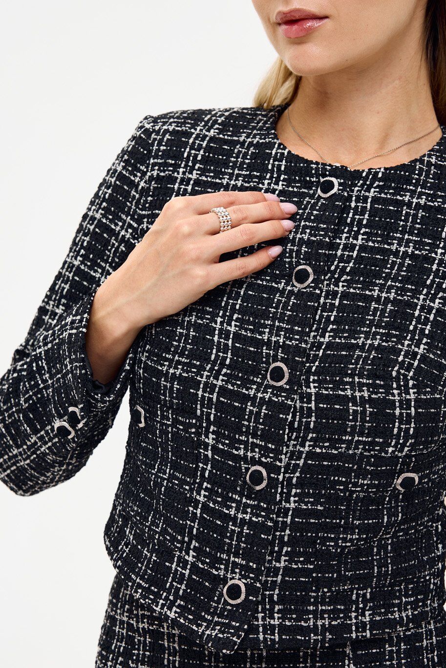 Костюм сірого кольору в клітинку із тканини буклє з люрексовой ниттю 3242 от Itelle