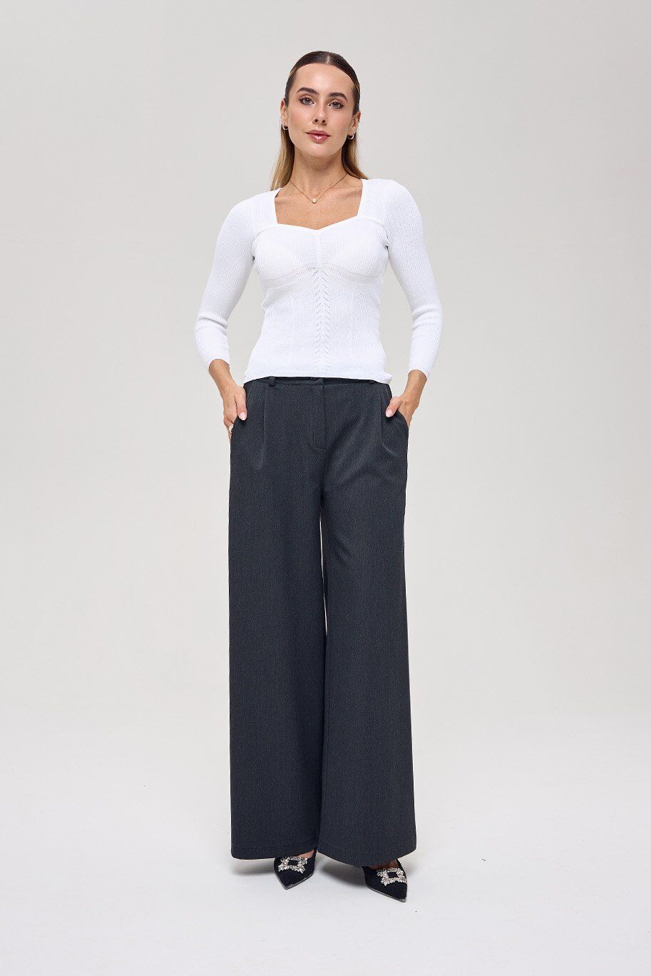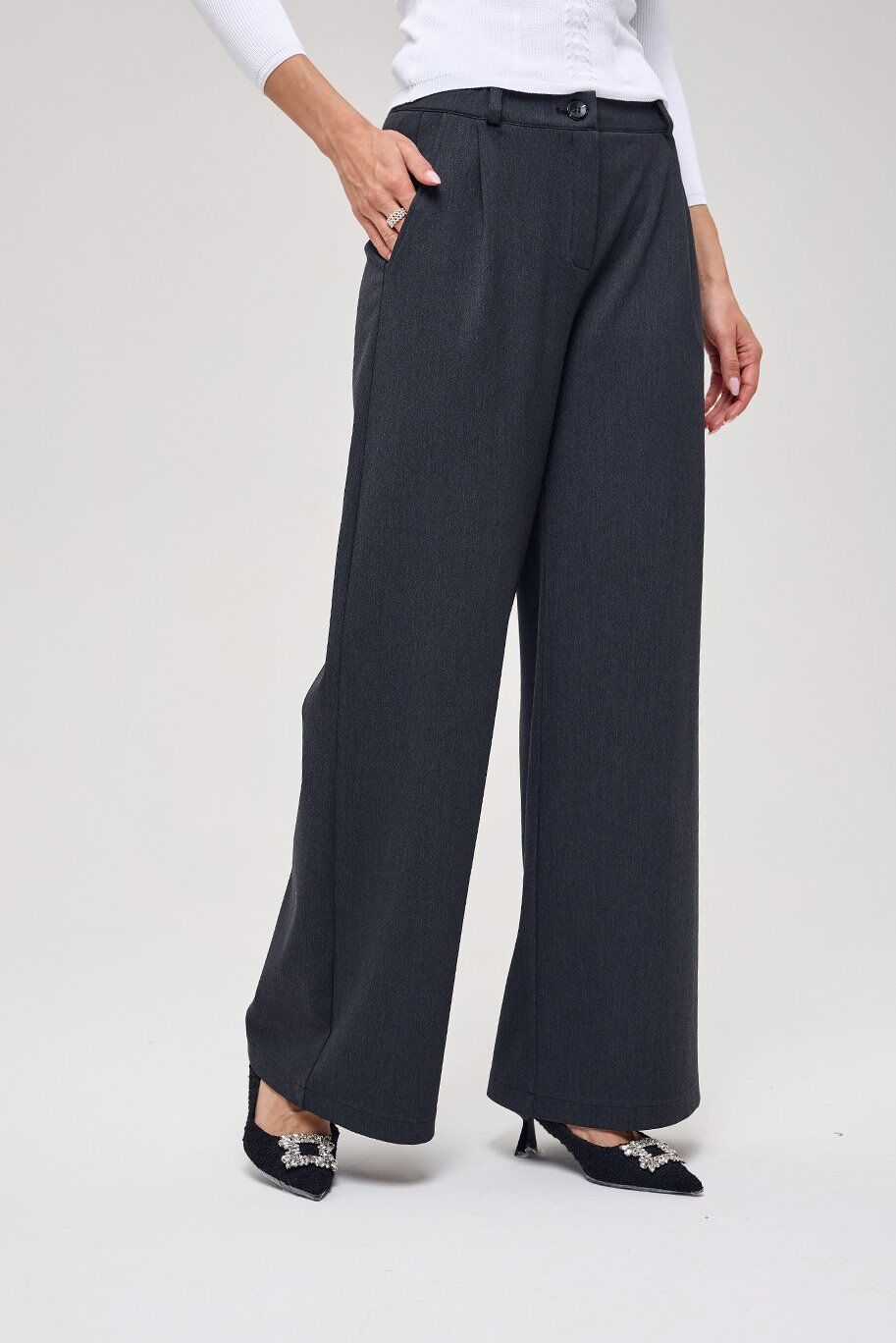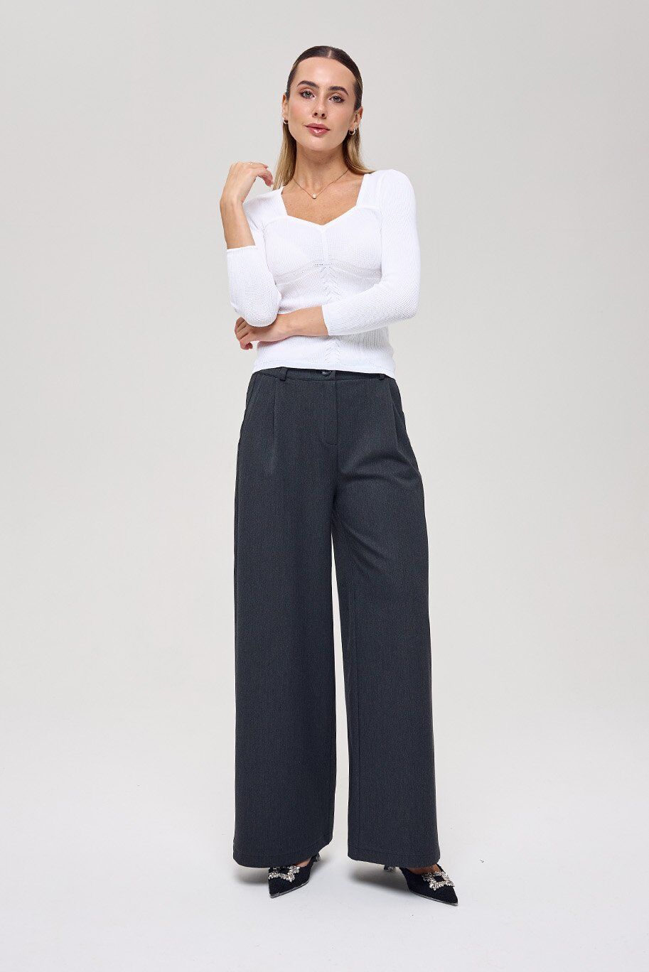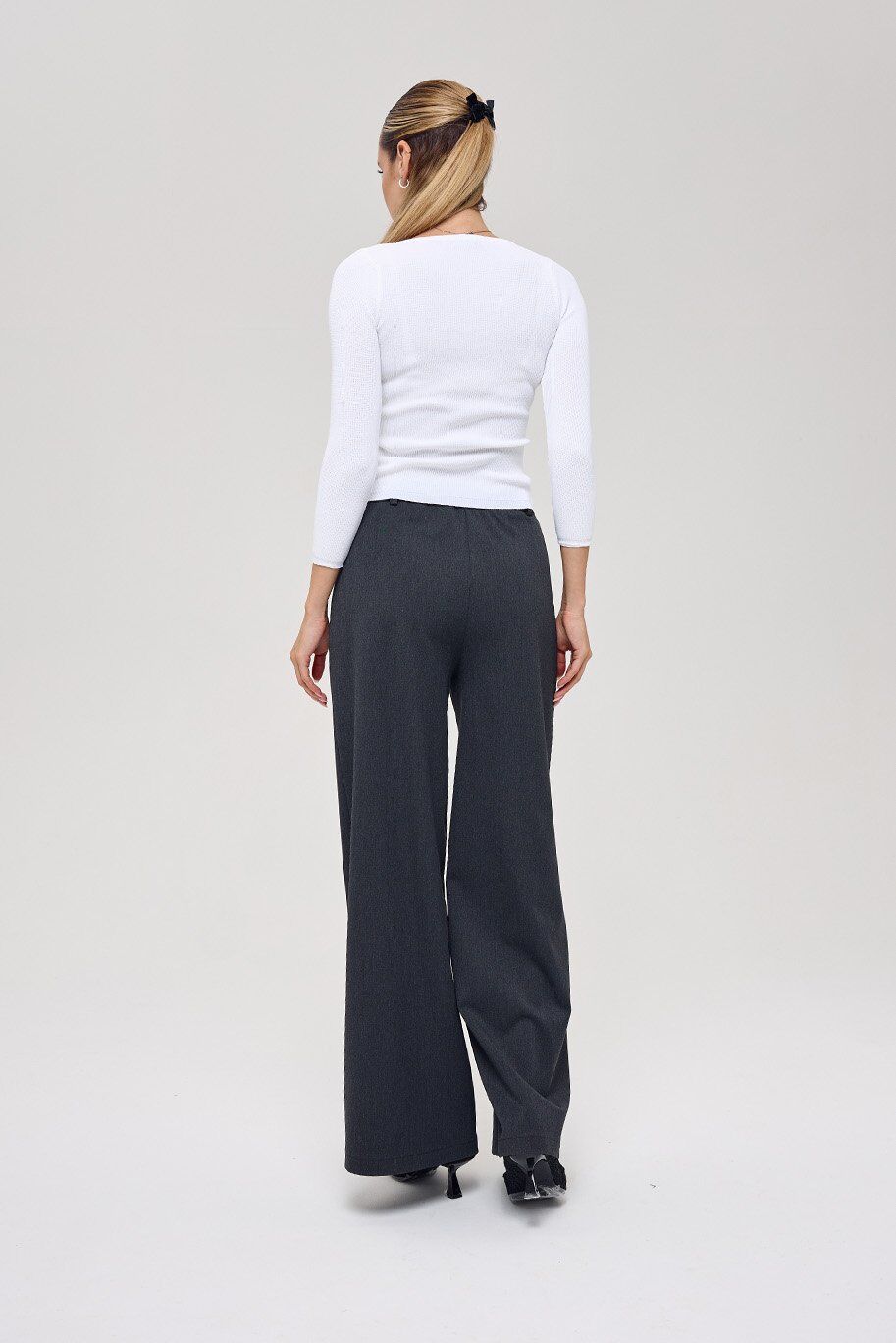 Штани палаццо із костюмної тканини з додаванням вовни сірого кольору 4368 от Itelle