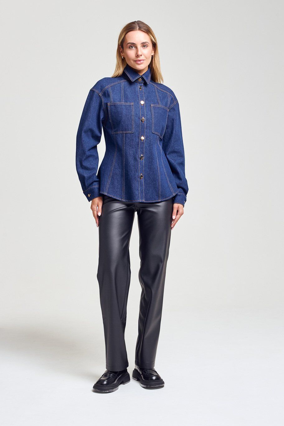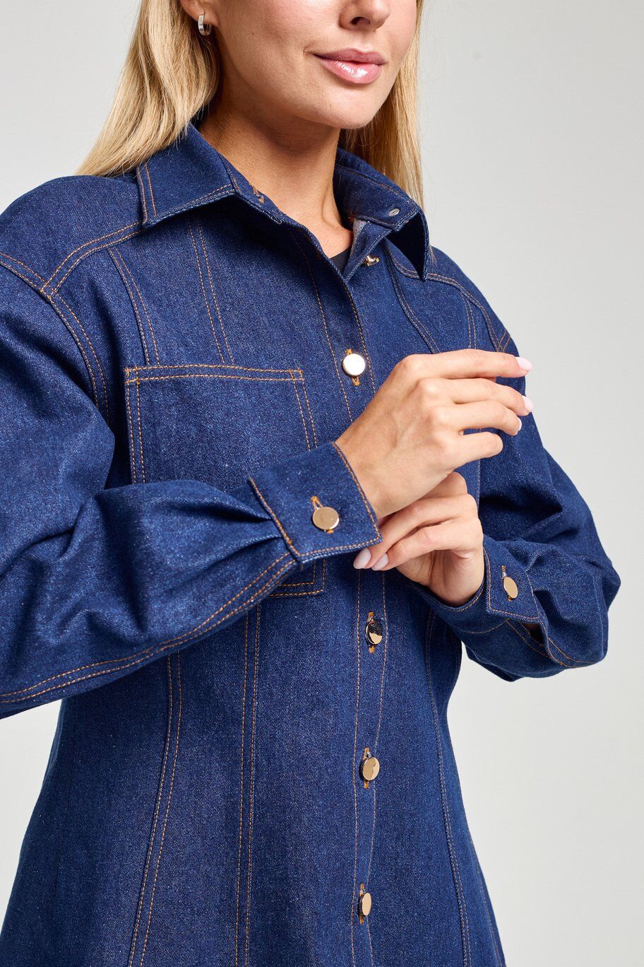 Колір: синій Розмірний ряд: 42,44,46 Сезон: осінь, зима, весна Склад: 50% віскозу, 25% поліестер, 20% коттон, 5% лайкра Стиль: повсякденний, Тип виробу: жакет , куртка Тип тканини: денім Джинсова куртка приталеного силуету з легким розширенням по лінії стегон створює жіночний та елегантний образ. Модель прикрашена золотистими ґудзиками, що додають вишуканого акценту. Завдяки універсальному крою куртку можна носити поверх футболки, джемпера чи інших базових речей. Стильний дизайн робить її доречною як у повсякденних, так і більш вишуканих поєднаннях. Заміри куртки : Об'єм грудей: 42р.- 96 см , 44р.-100 см, 46р.-104 см. Обʼєм талії : 42р.-86 см, 44р.-90 см, 46р.-94 см. Обʼєм стегон : 42р.-104 см, 44р.- 108 см, 46р.-112 см. Довжина полички : 42р.-66 см, 44р.- 66.5 см, 46р.-67 см. Довжина спинки: 42р.-67 см, 44р.-67.3 см, 46р.-67.6 см. Довжина рукава : 42р.-56 см, 44р.-56.3 см, 46р.-56.6 см.Термін збору замовлення складає від 1 до 7 робочих днів. Докладніше