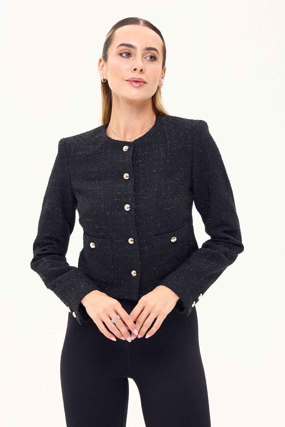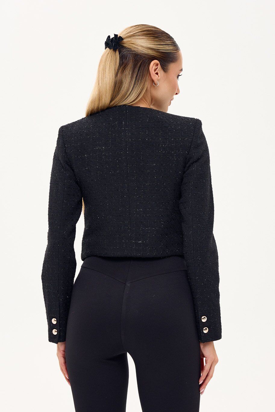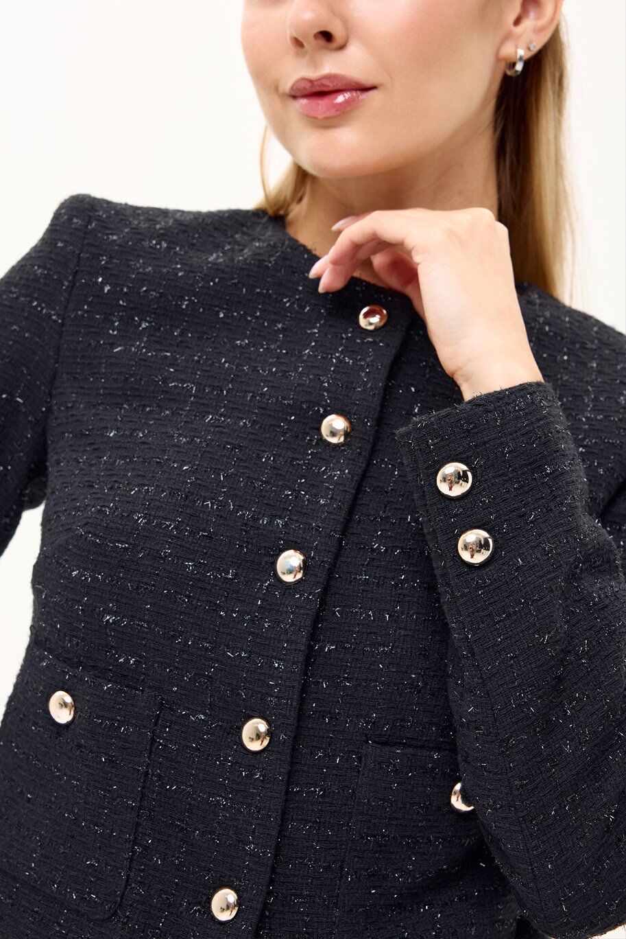 Колір: чорний з люрексовой ніттю Розмірний ряд: 42,44,46 Сезон: осінь, зима, весна, літо Склад: 50% віскоза, 25% поліестер, 20% котон, 5% лайкра Стиль: святковий, повсякденний Тип виробу: жакет Тип тканини: буклє з люрексовой ніттю Цей жакет в стилі Шанель зроблений з тканини букле з люрексовою ниткою. Він має маленькі накладні кишені та вишукані золоті гудзики. Виміри жакету Обʼєм грудей: 42 розмір 93 см 44 розмір 97 см 46 розмір 101 см Обʼєм таліі : 42 розмір 84 см 44 розмір 88 см 46 розмір 92 см Довжина рукава: 42 розмір 61.5 см 44 розмір 61.9 см 46 розмір 62.3 см Довжина полички : 42 розмір 45.5 см 44 розмір 46.3 см 46 розмір 47.1 см Довжина по спині: 42 розмір 42 см 44 розмір 42.5 см 46 розмір 43 смТермін збору замовлення складає від 1 до 7 робочих днів. Докладніше