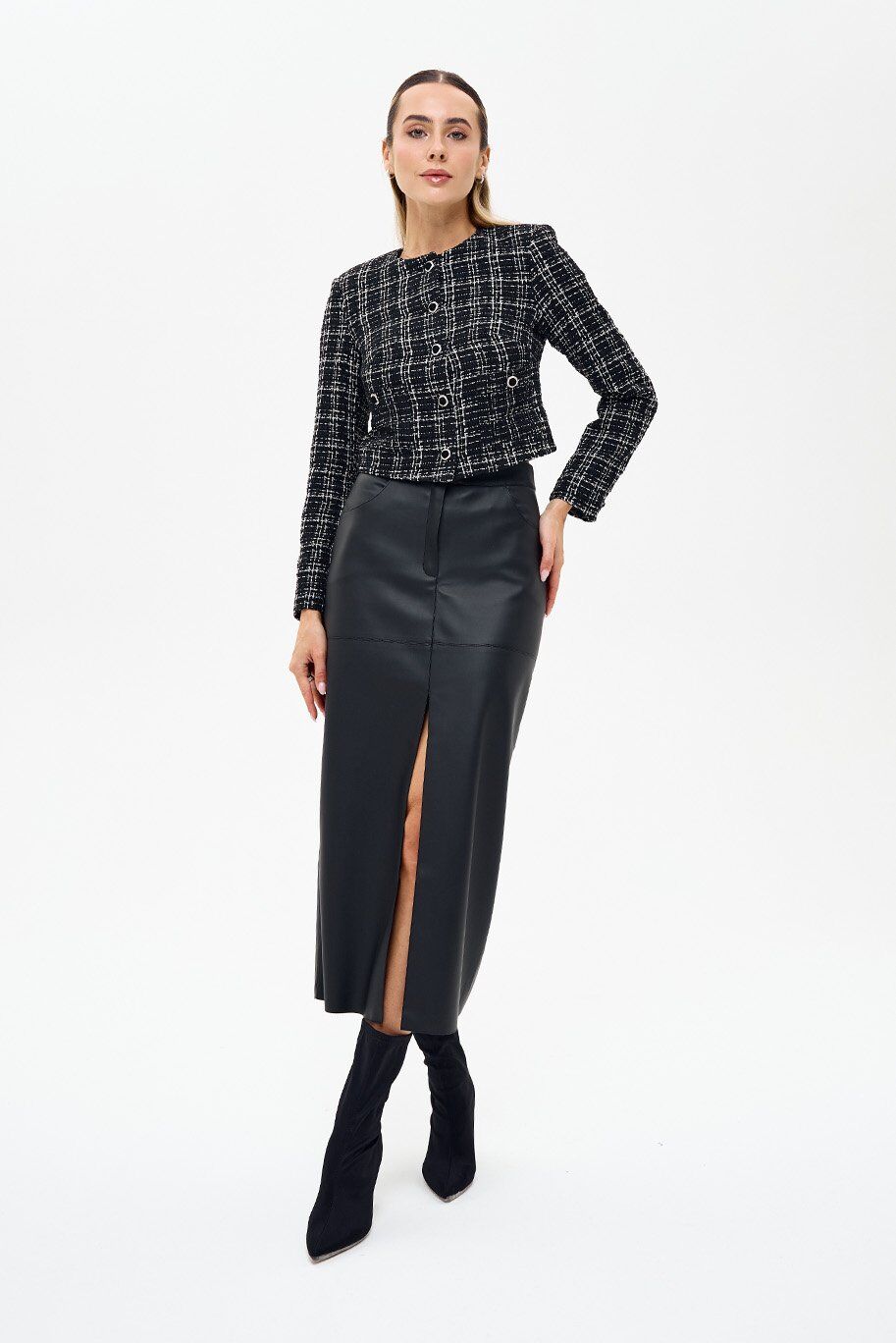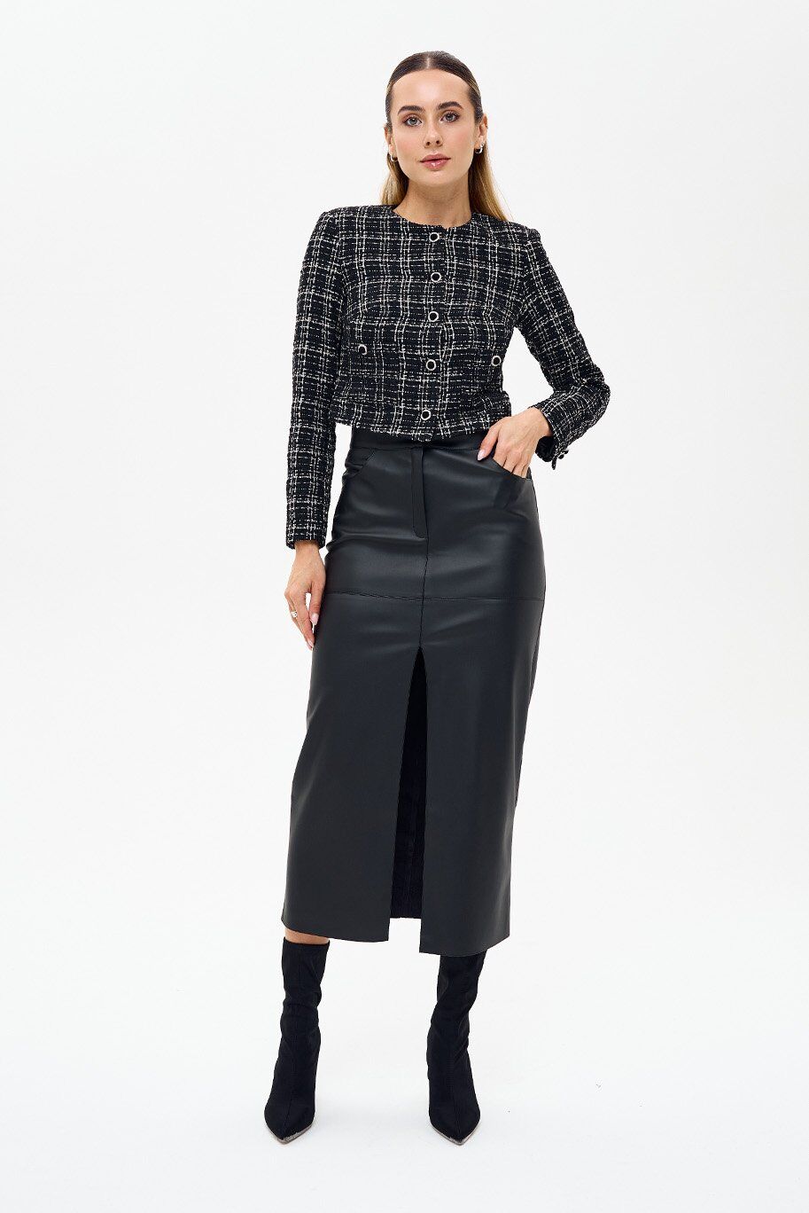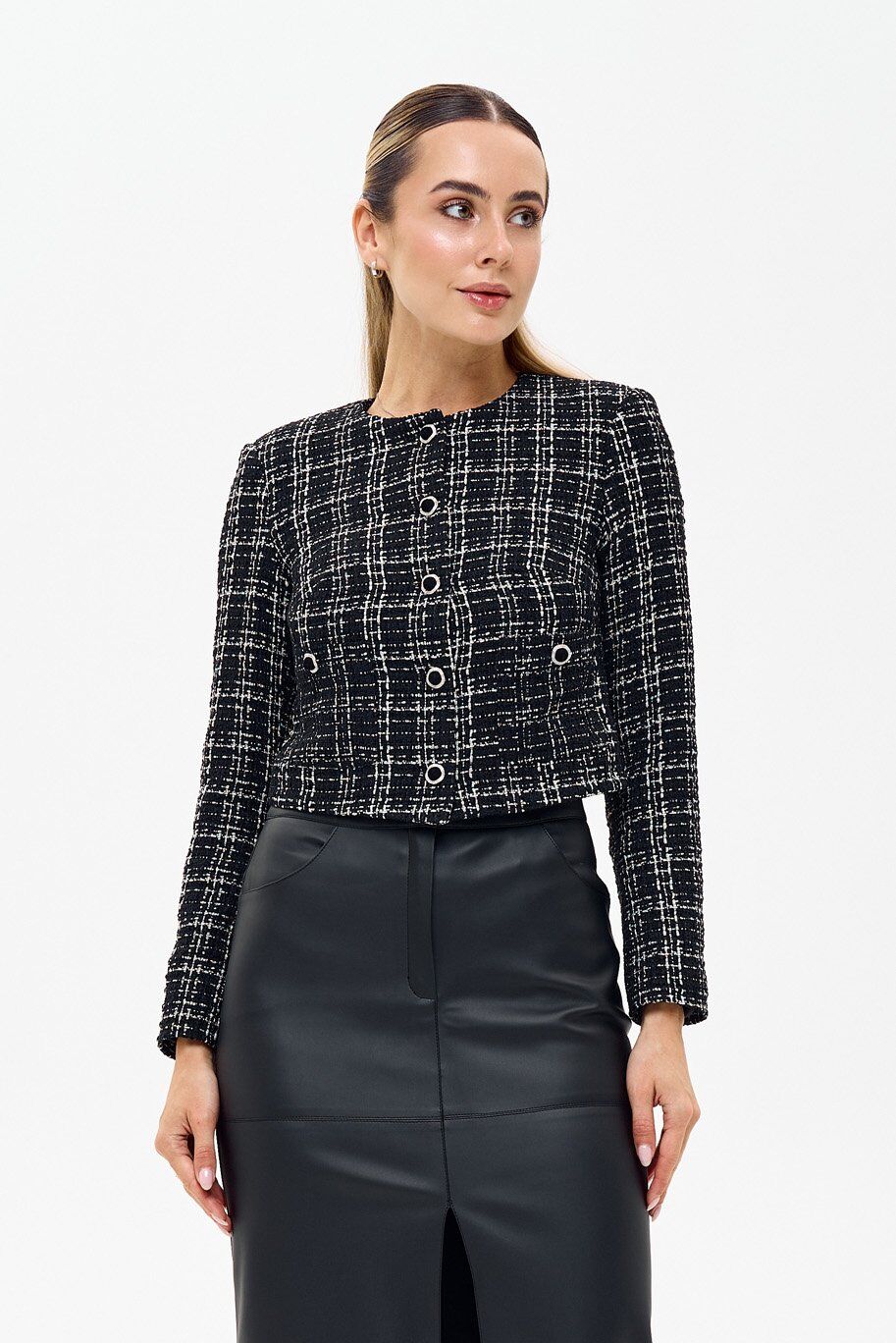 Жакет із тканини буклє сірого кольору в клітинку з люрексовю ниттю 7144 от Itelle