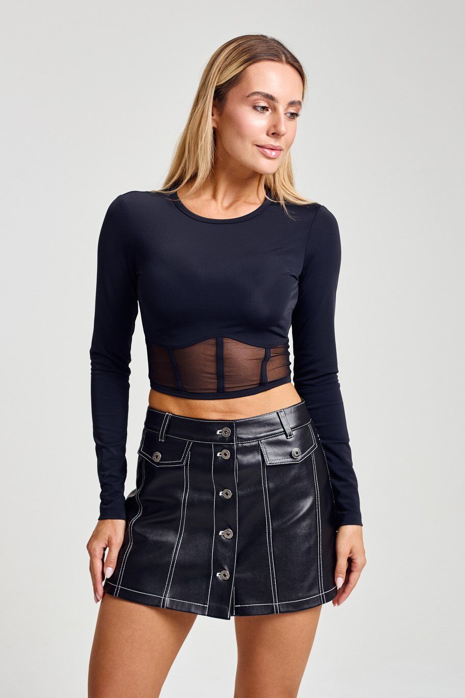 Колір: чорний Розмірний ряд: 42,44,46 Сезон: осінь, зима, весна, літо Склад:55% віскоза, 45% поліестер Стиль: повсякденний, святковий Тип виробу: Лонгслів Тип тканини: Біфлекс Укорочений лонгслів із біфлексу має облягаючий крій, що підкреслює фігуру та створює сучасний силует. Попереду вставлена напівпрозора сітка від лінії під грудьми донизу виробу, що додає моделі оригінальності та легкості. Завдяки еластичному матеріалу лонгслів зручний у носінні та підходить для поєднання з різними стилями одягу. Виміри лонгсліва Об’єм грудей : 42 розмір 70 см 44 розмір 74 см 46 розмір 78 см Обʼєм талії : 42 розмір 52 см 44 розмір 56 см 46 розмір 60 см Довжина рукава: 42 розмір 58.5 см 44 розмір 58.8 см 46 розмір 59.1 см Довжина полички: 42 розмір 38 см 44 розмір 38.5 см 46 розмір 39 см Довжина спинки: 42 розмір 41 см 44 розмір 41.5 см 46 розмір 41.6 смТермін збору замовлення складає від 1 до 7 робочих днів. Докладніше