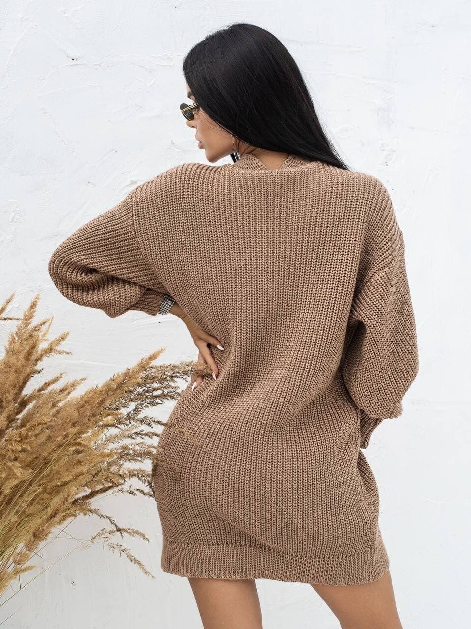 СТИЛЬНЫЙ кардиган из хлопка, который можно носить как в виде платья с сапожками так и с брюками и джинсами. Скорей забирай его себе