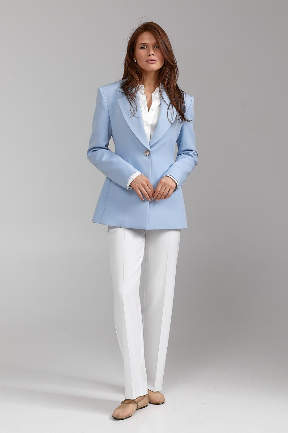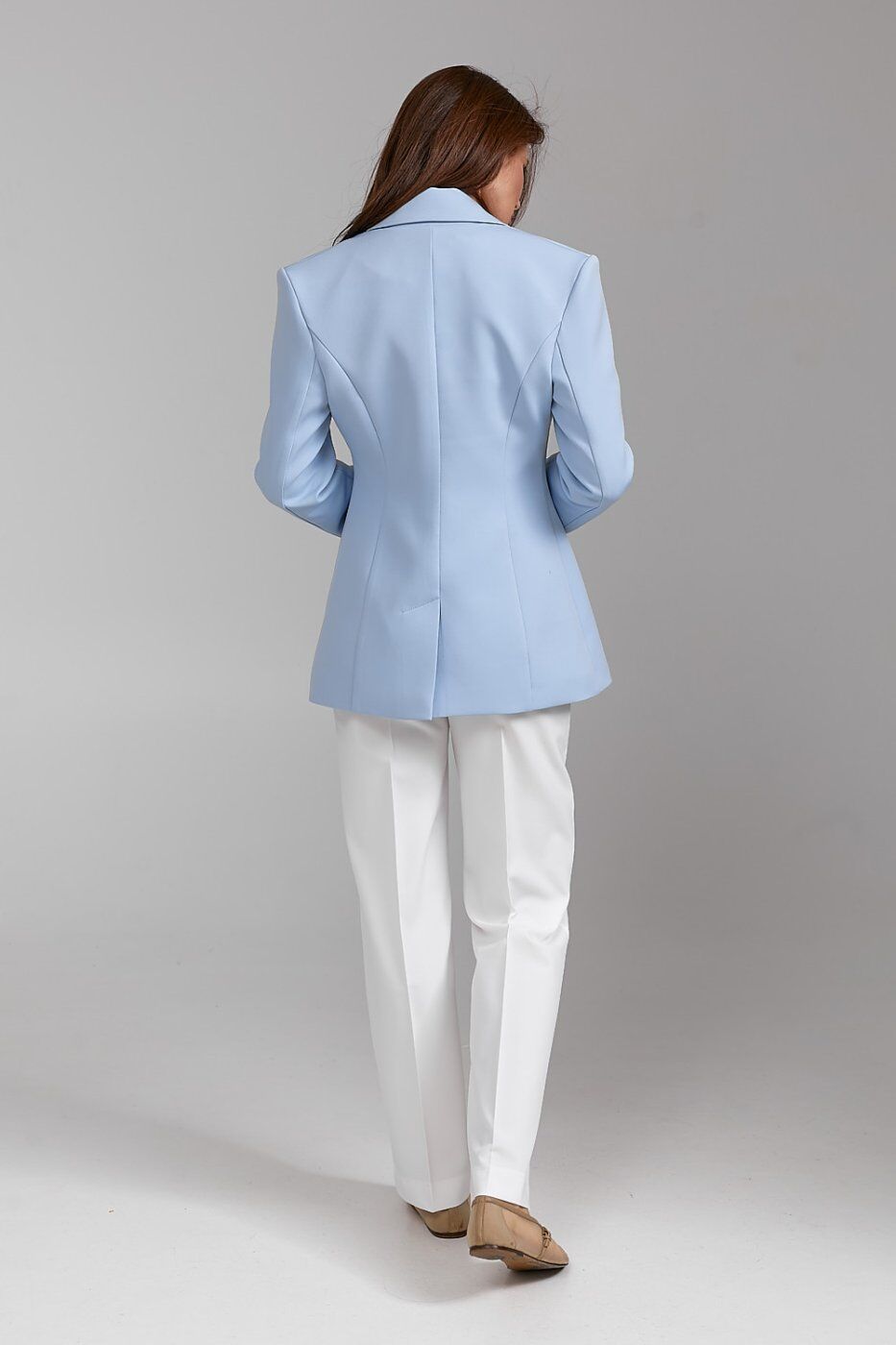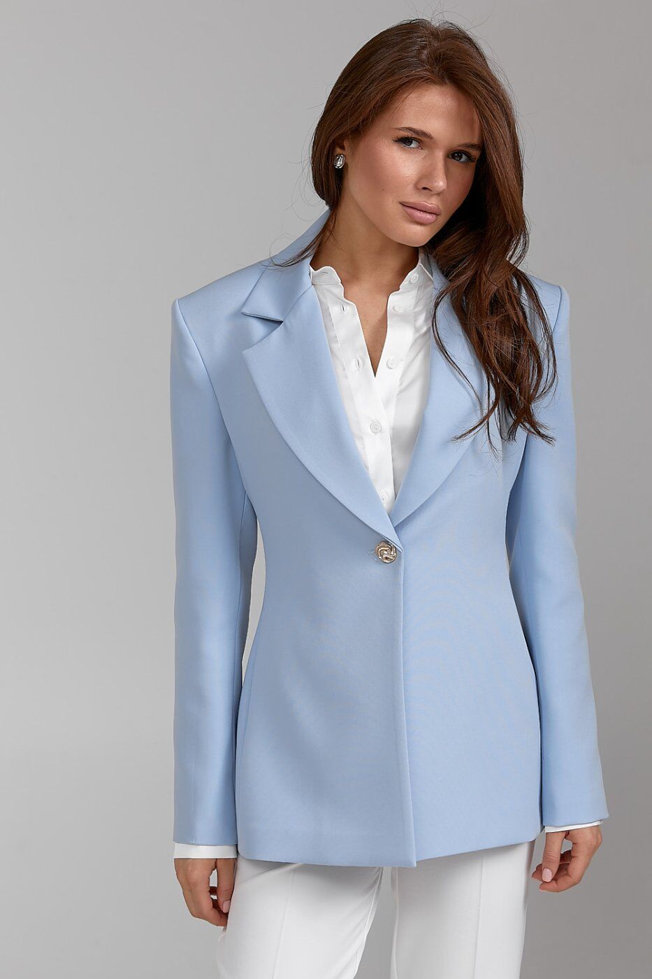 Піджак ARTMON у ніжному блакитному відтінку — це поєднання стриманої елегантності та сучасного крою. Приталений силует, класичний комір і одноґудзикова застібка підкреслюють витонченість образу. Ідеальний варіант як для ділового, так і для повсякденного стилю.