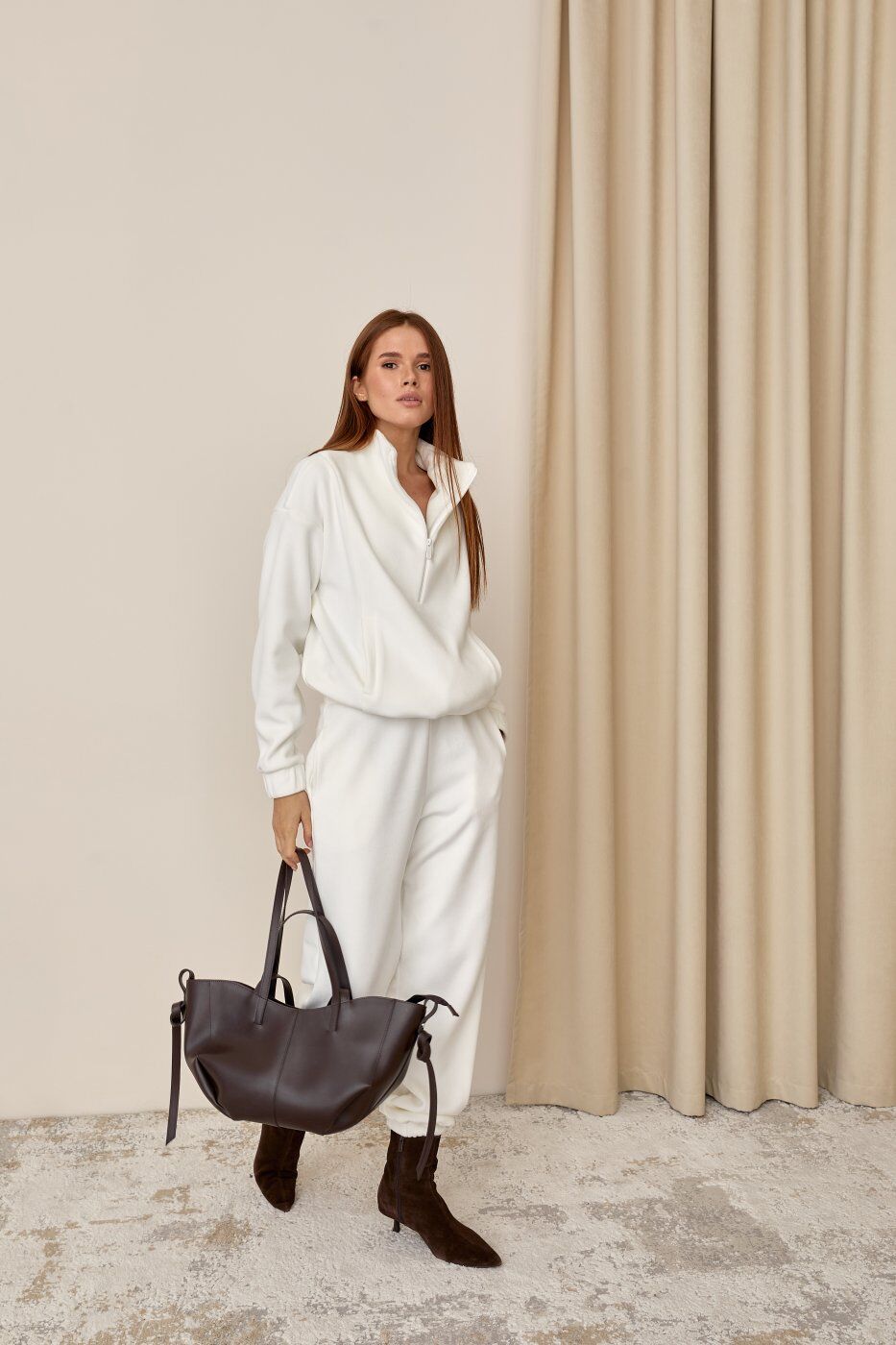 Молочний теплий велюровий костюм на флісе 6766.1 от SL-ARTMON