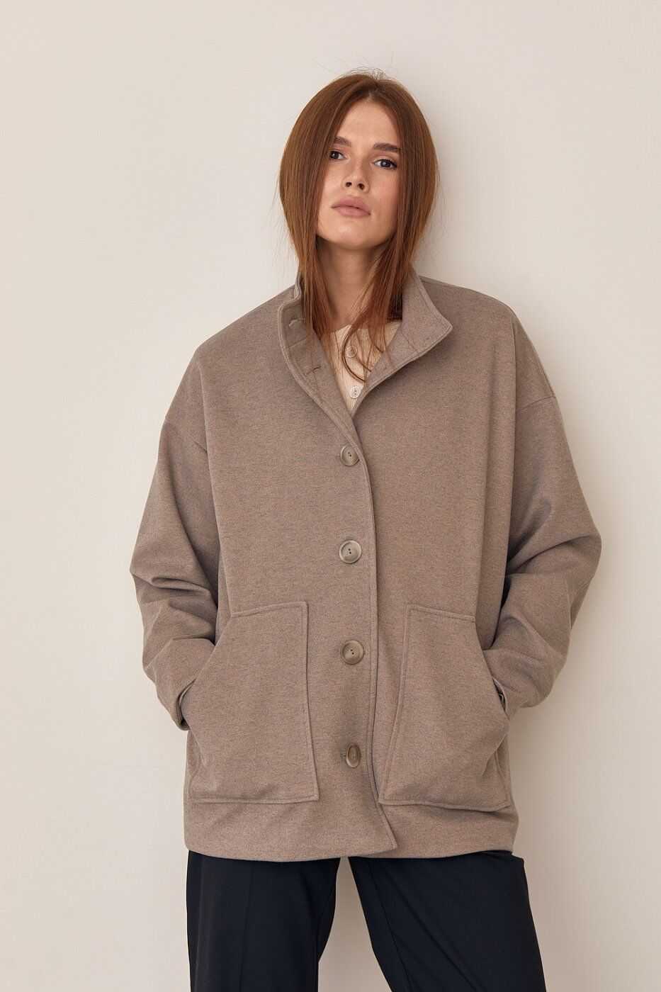 Жіночий бомбер кольору капучино з кишенями, з застібкою гудзики 571.1 от SL-ARTMON