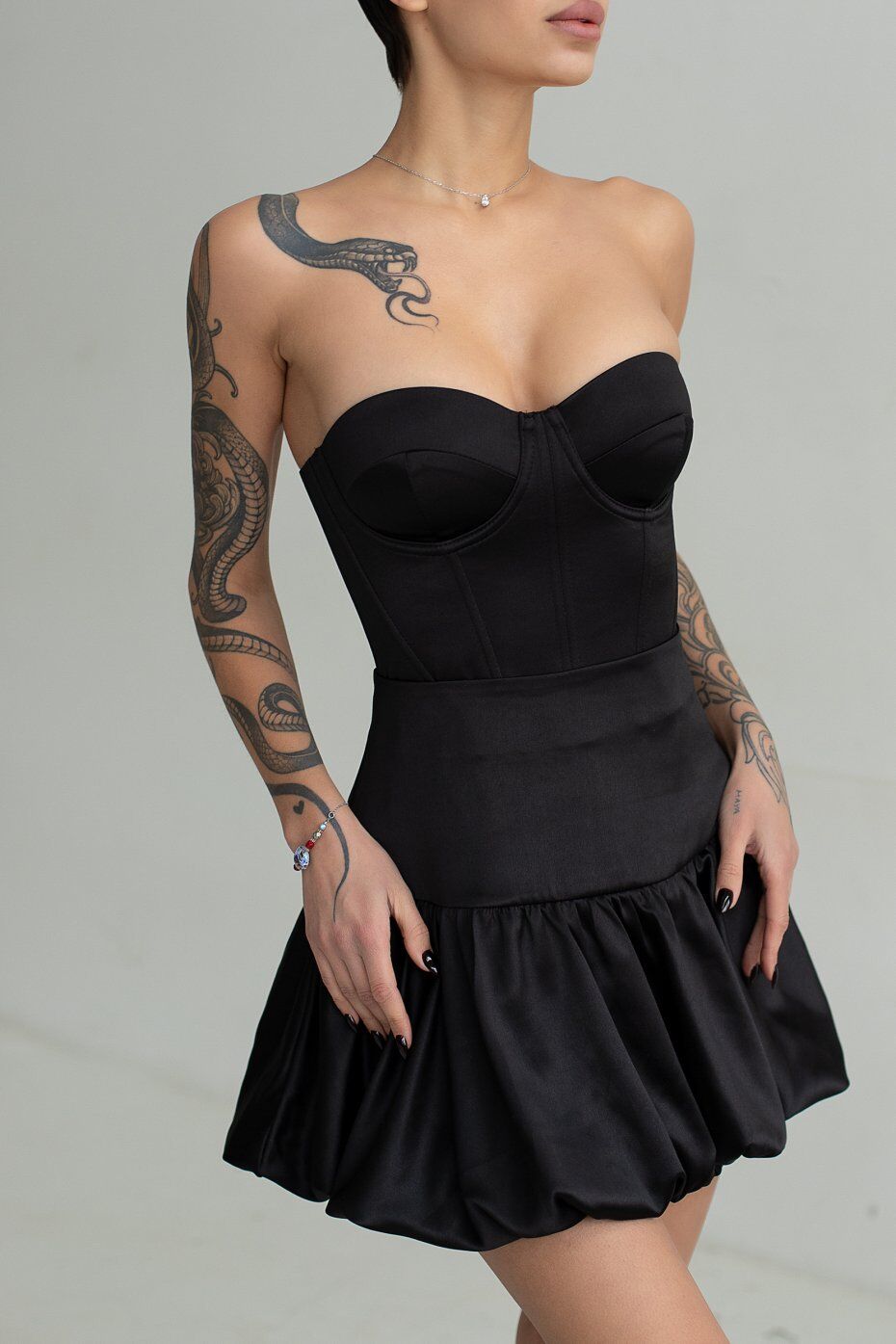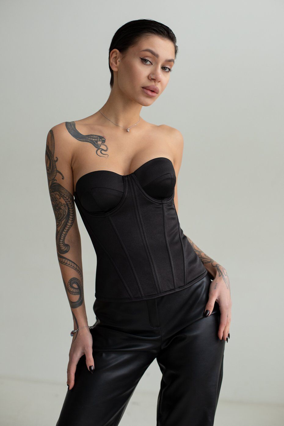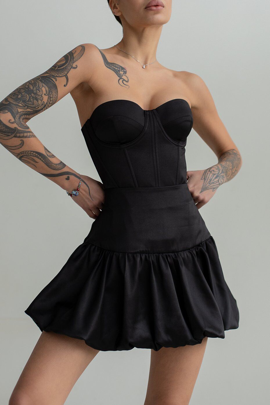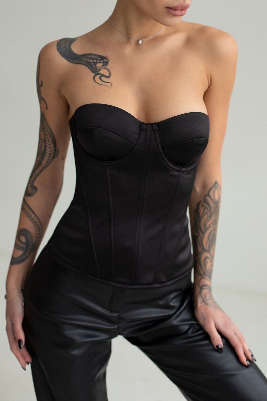 Корсет из плотного атласа с чашкечками которые отлично фиксируют грудь. В рельефные швы вставлены косточки. Застежка в среднем шве спинки на металлическую молнию. Длина изделия по центру спинки 25 см.