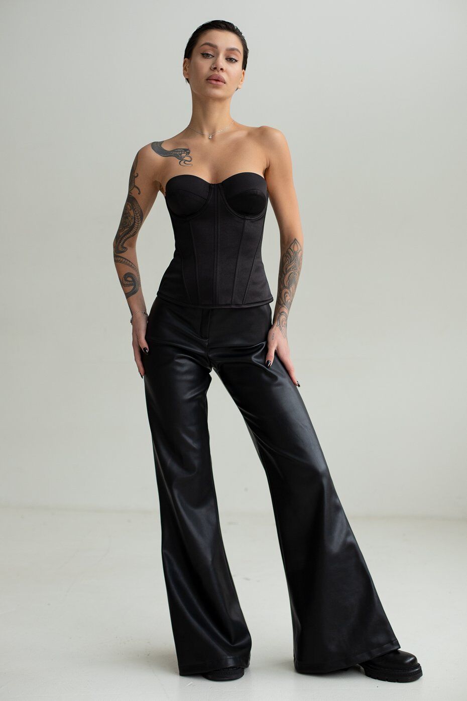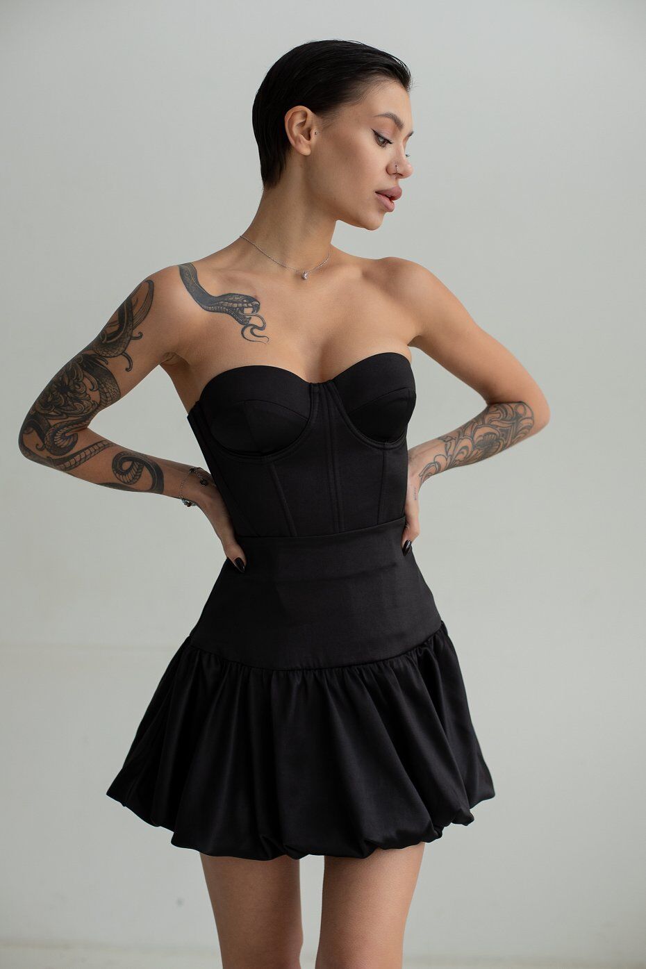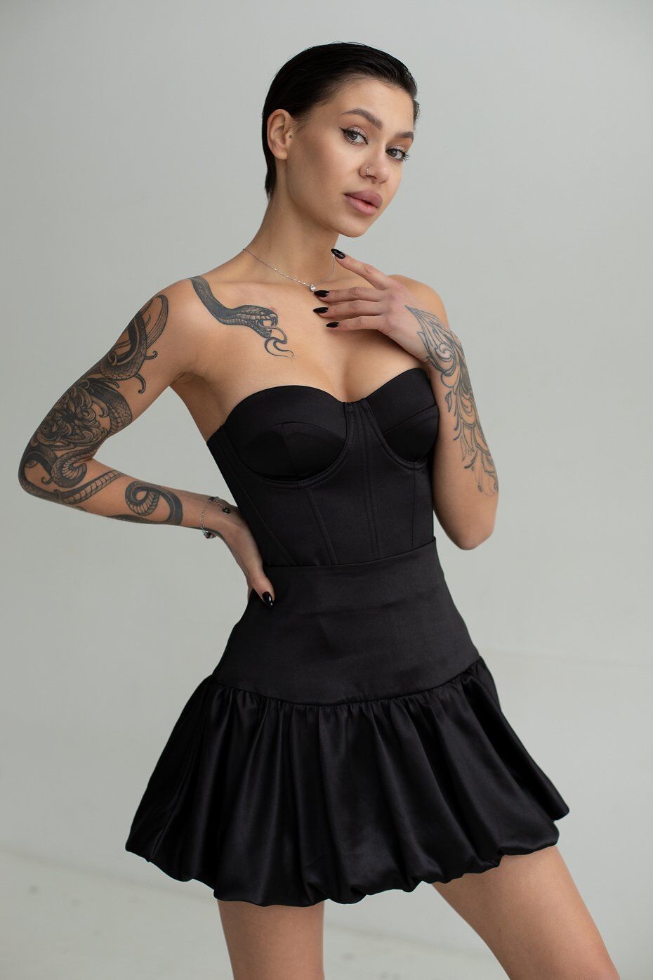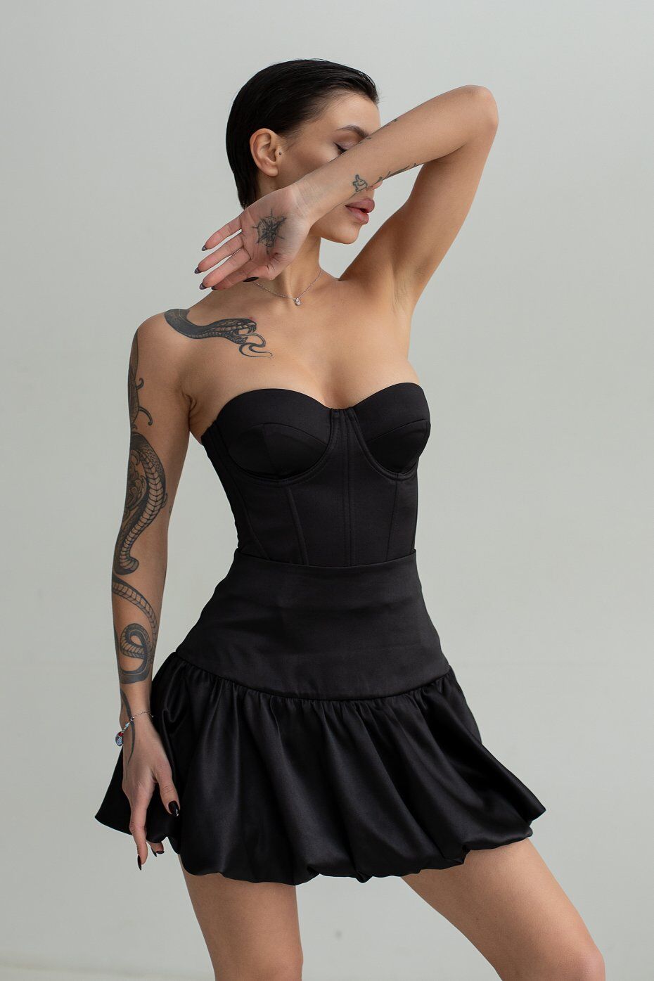 Корсет из плотного атласа с чашкечками которые отлично фиксируют грудь. В рельефные швы вставлены косточки. Застежка в среднем шве спинки на металлическую молнию. Длина изделия по центру спинки 25 см.