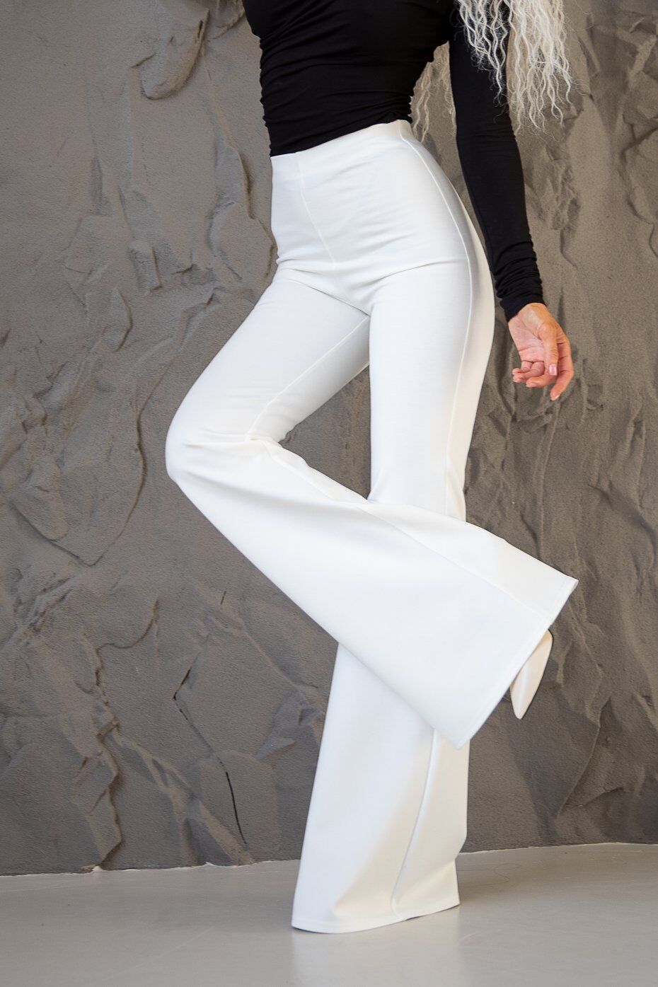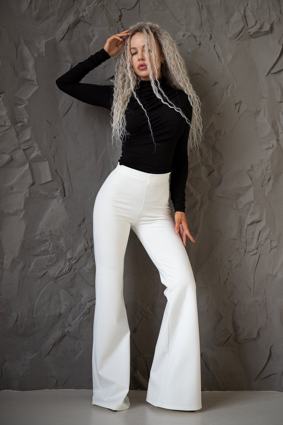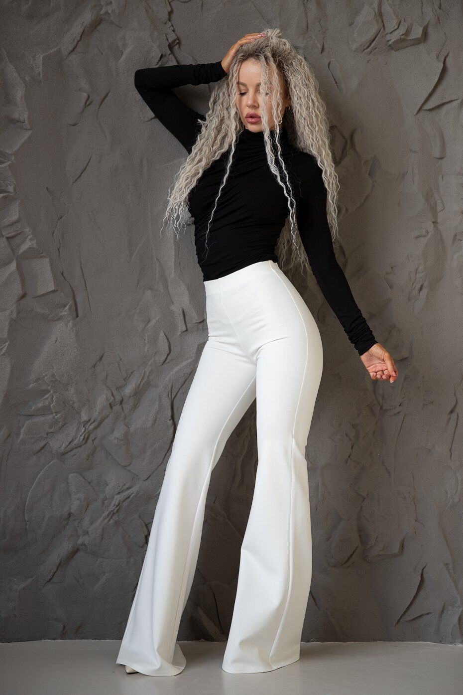 Трендовые лосины клеш от колена. Модель выполнена из плотной утягивающей ткани. Длина по внешнему шву 114 см.