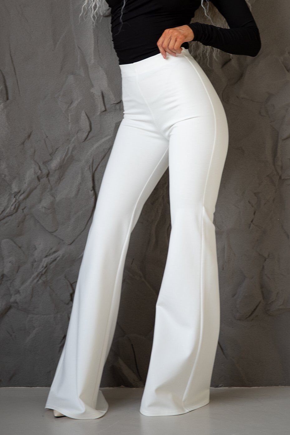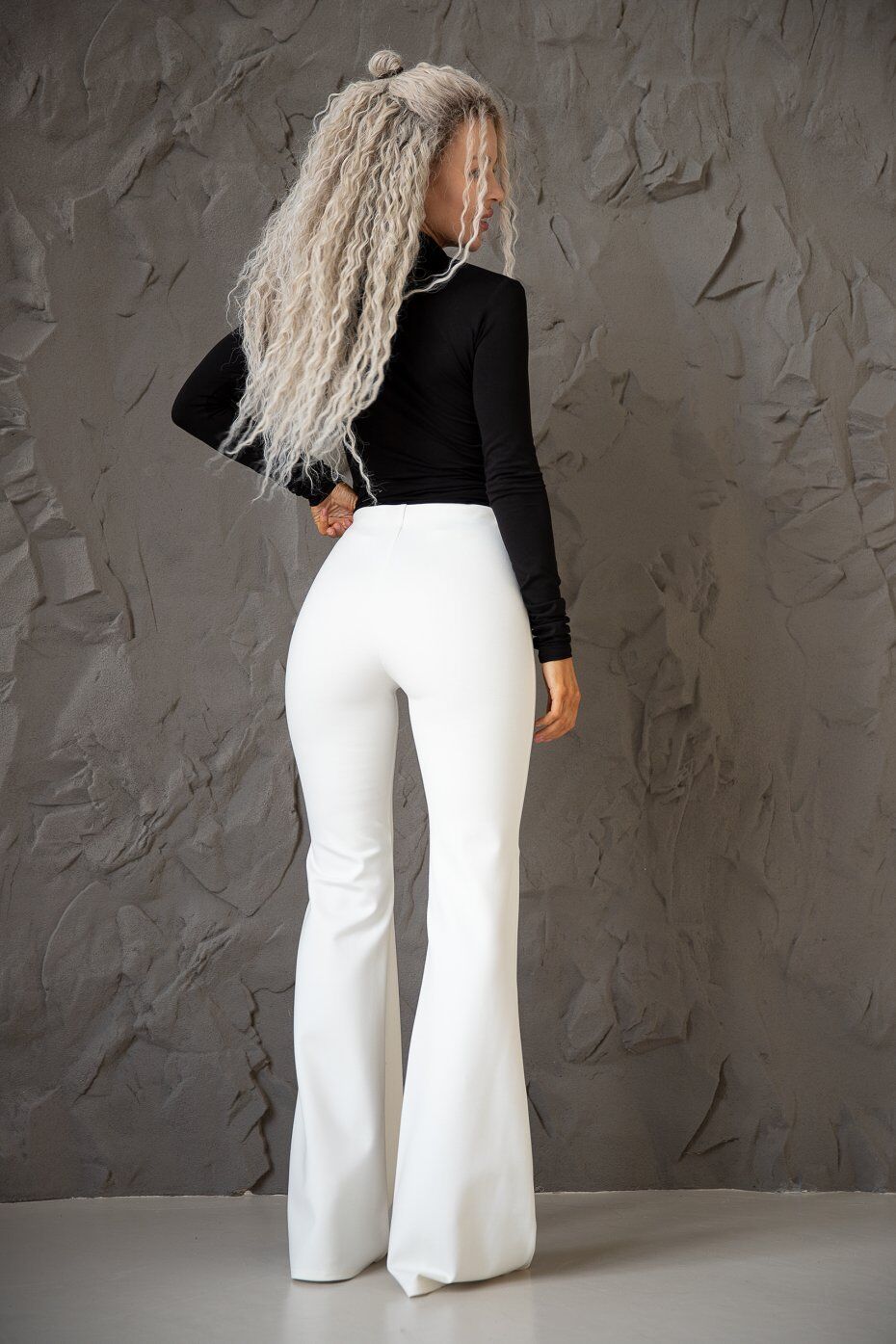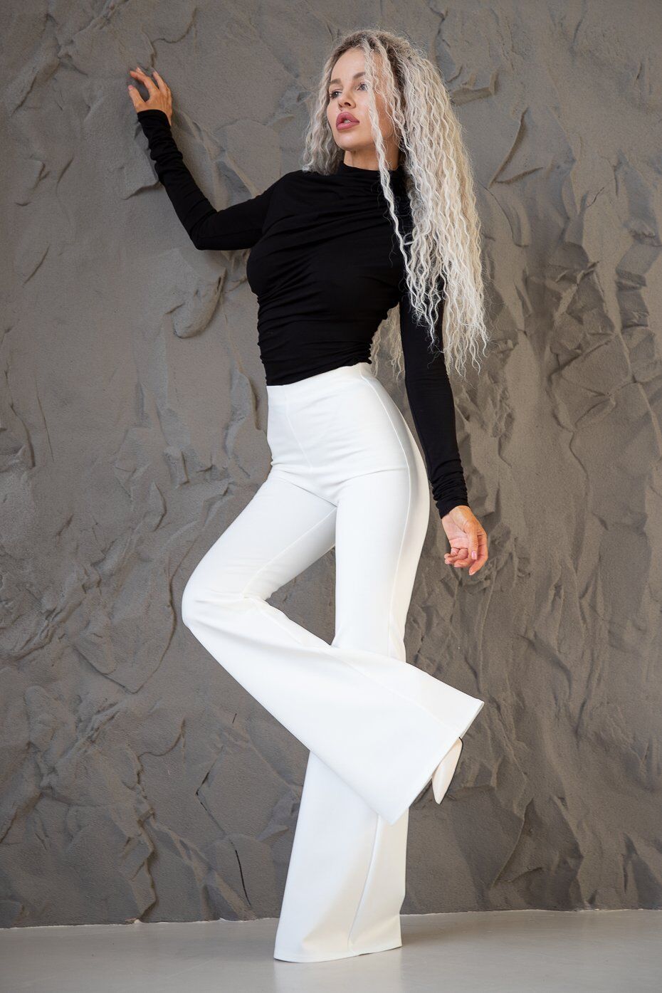 Трендовые лосины клеш от колена. Модель выполнена из плотной утягивающей ткани. Длина по внешнему шву 114 см.