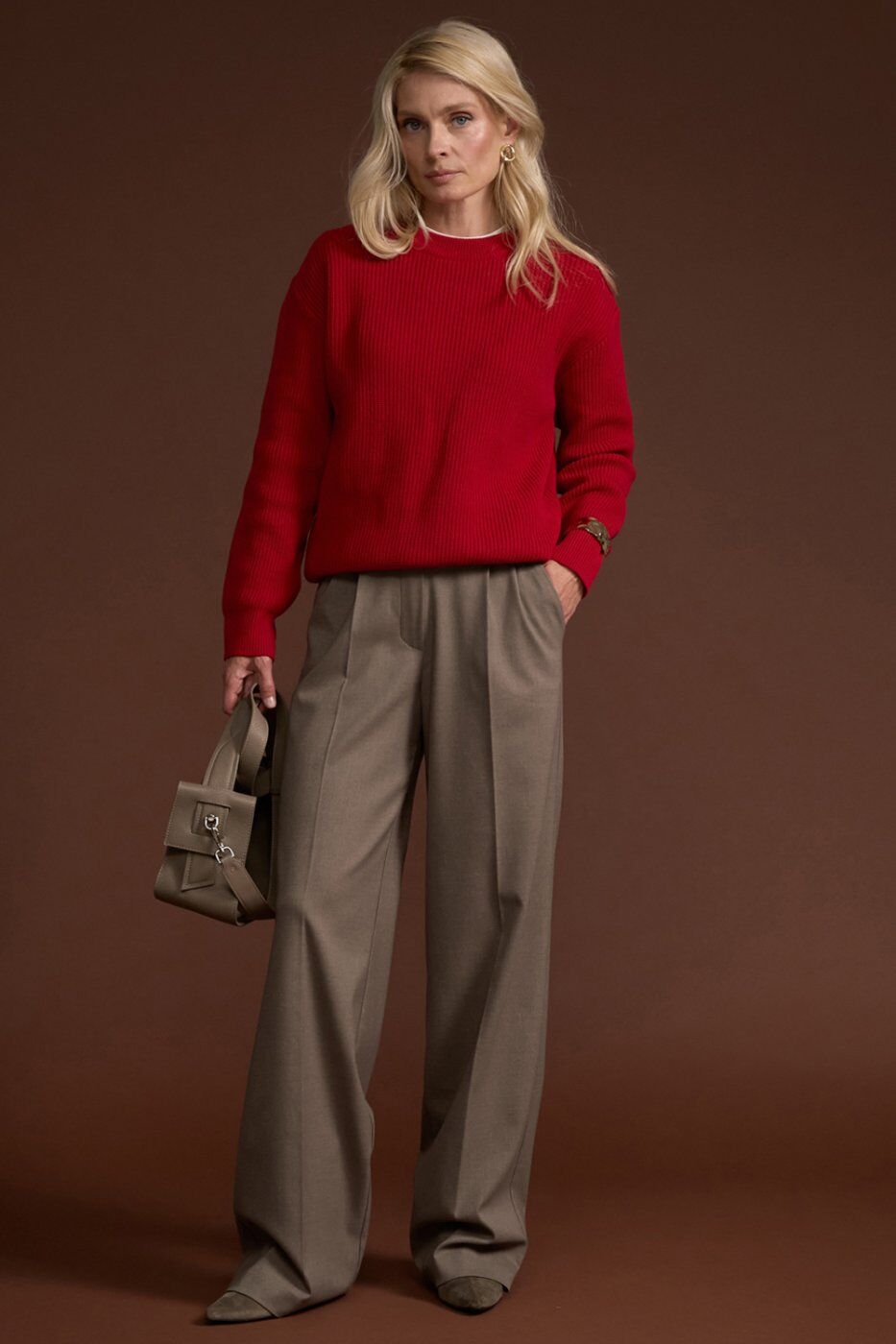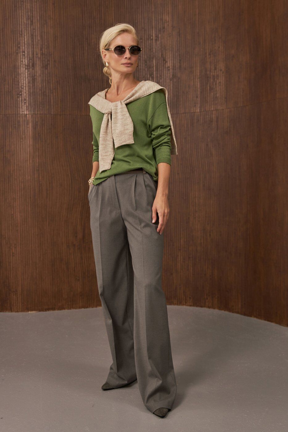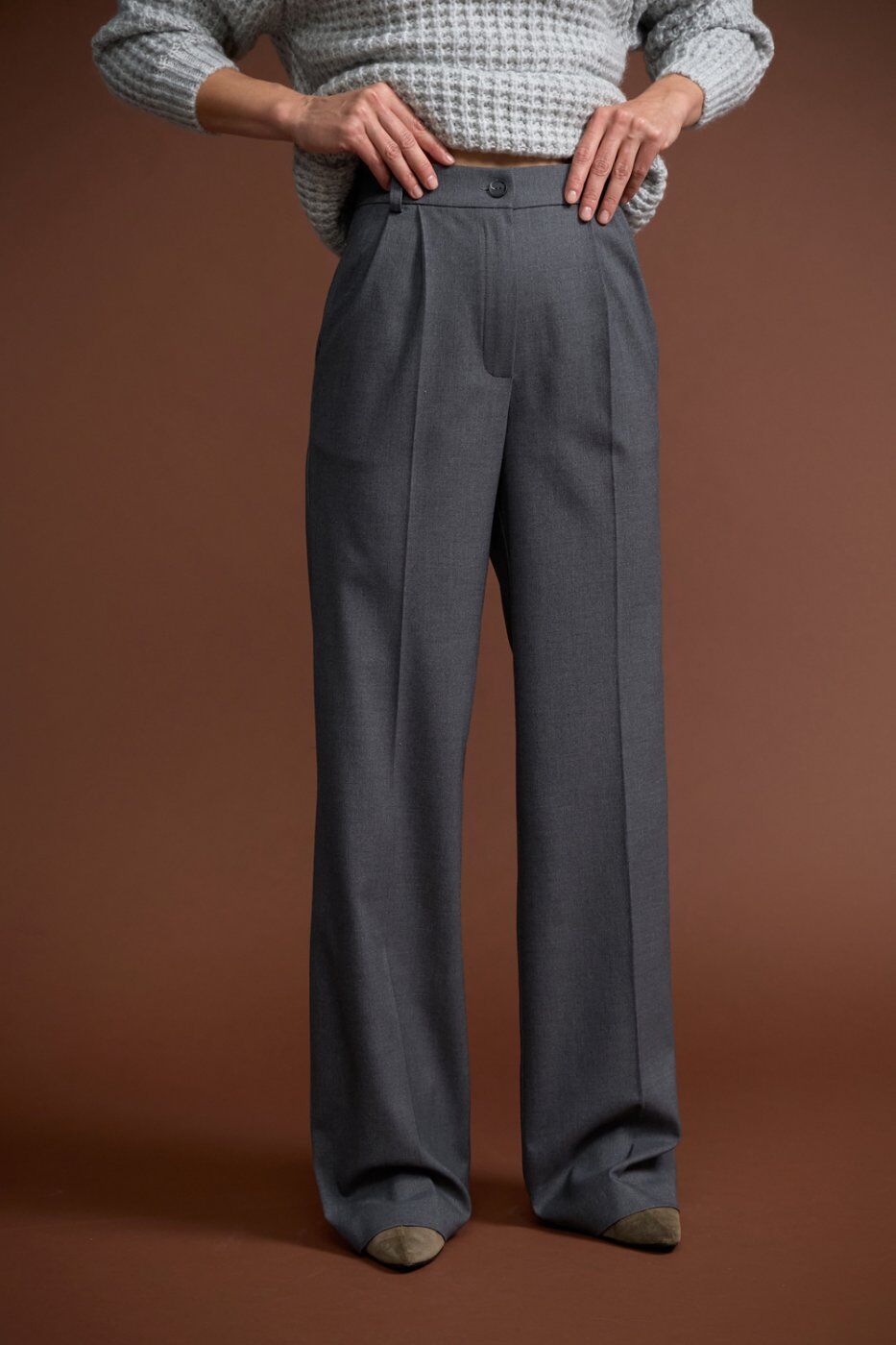 Класичні прямі штани з напіввовняної тканини середньої щільності. Завдяки елегантним защіпам спереду утворюються м’які складки, а бокові кишені додають зручності.